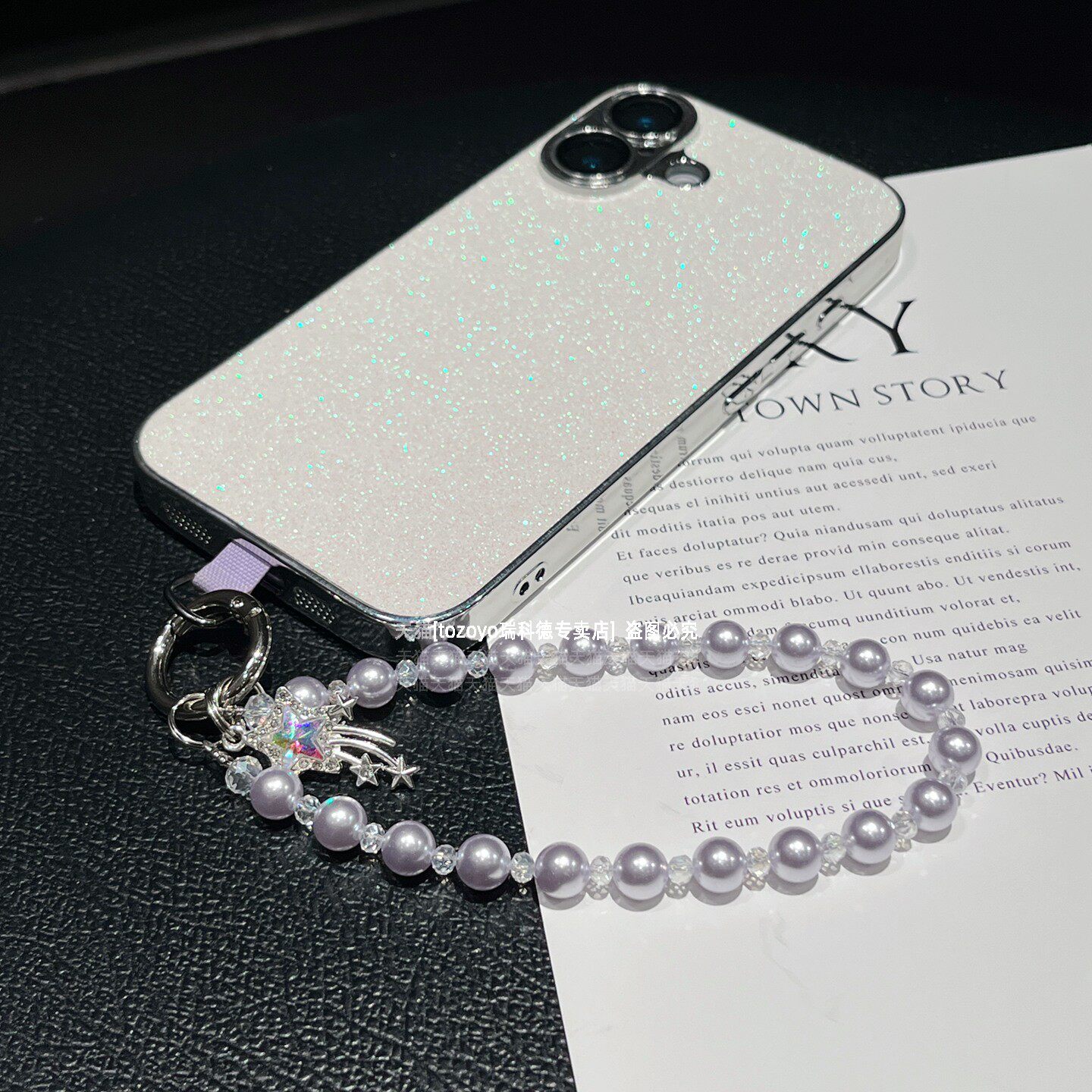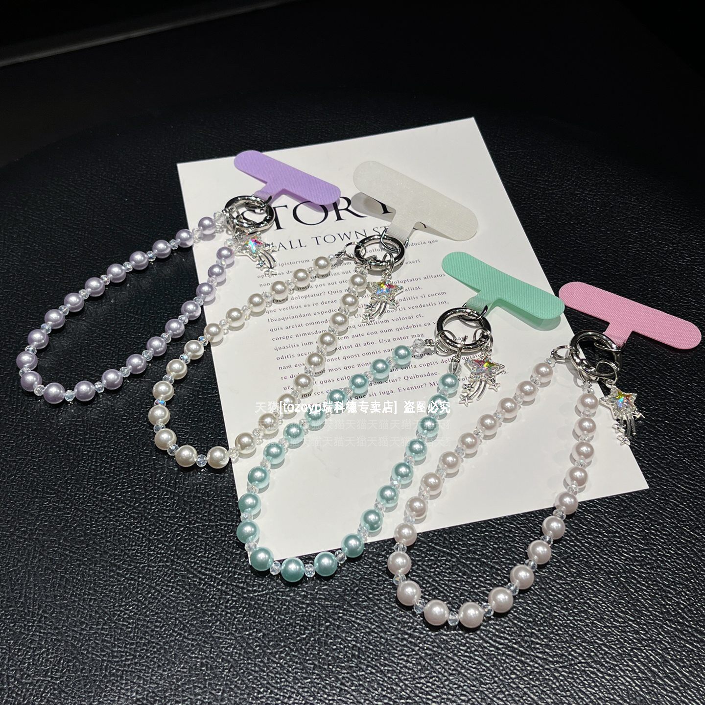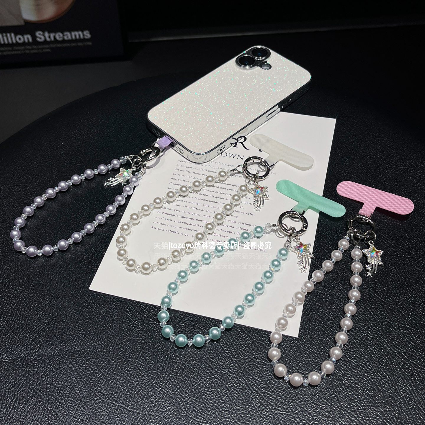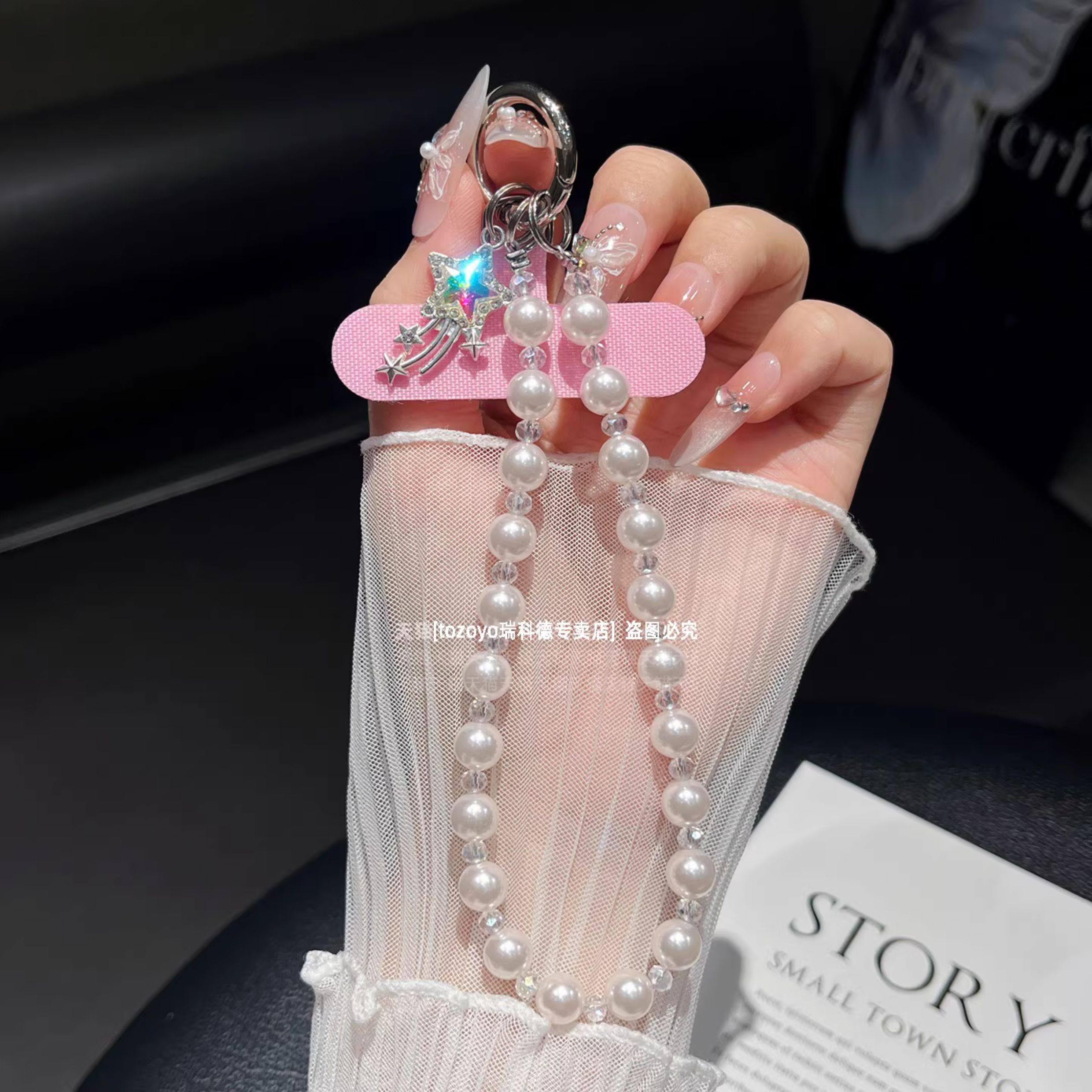 巨亮圆润珍珠手机链高质感手腕挂链高级时尚串珠手链精致小众链条挂饰包包钥匙扣防丢挂件闪钻星星吊坠垫片壳