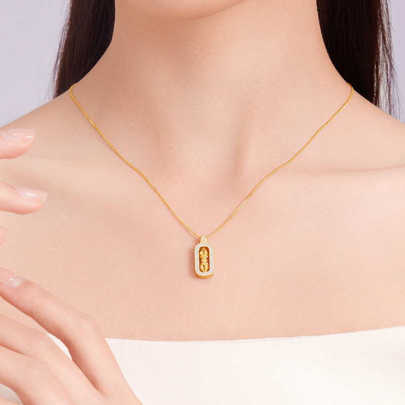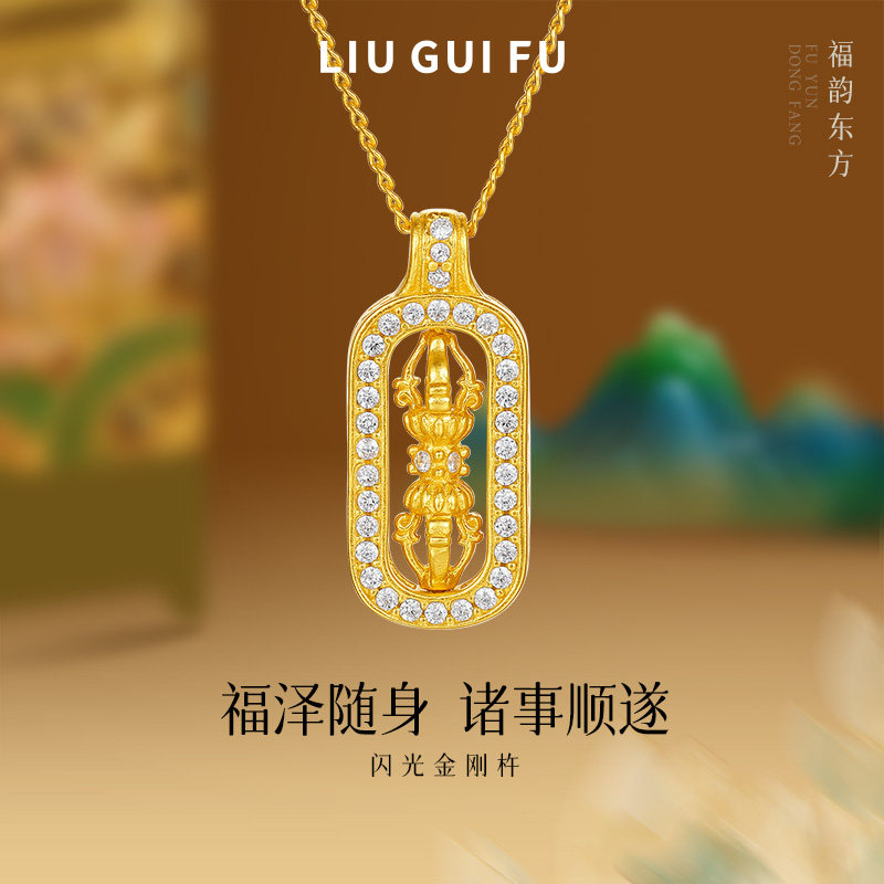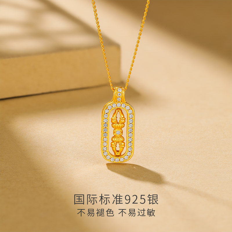 六桂福珠宝金刚杵吊坠女新款S925纯银项链圣诞礼物送妈妈女友套链