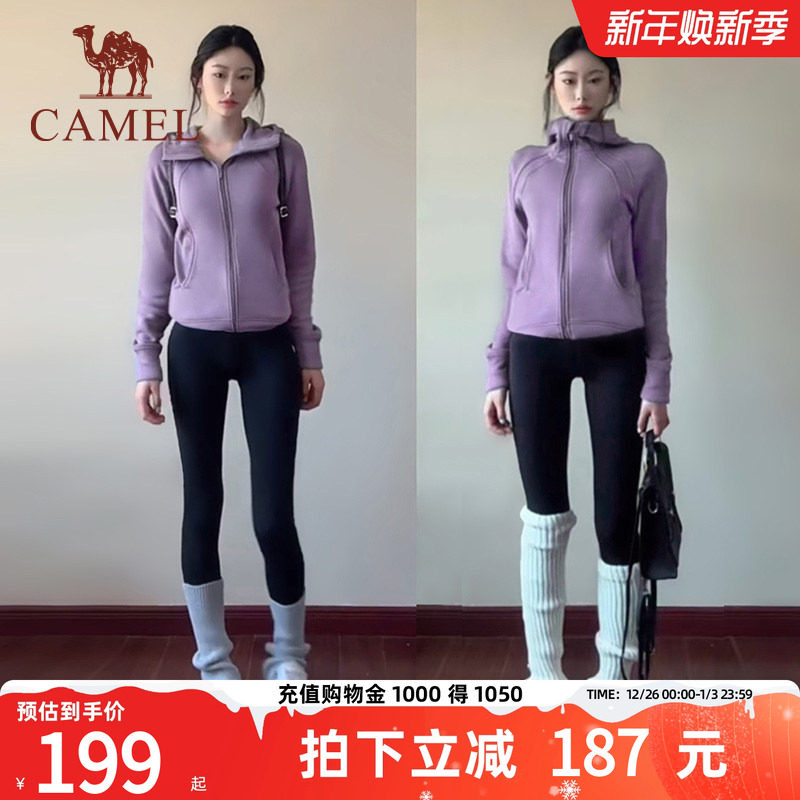 骆驼女装小蛮腰外套2025秋季针织加绒连帽卫衣收腰显瘦修身开衫