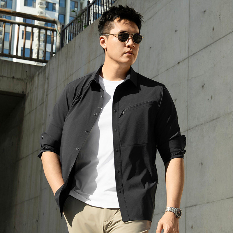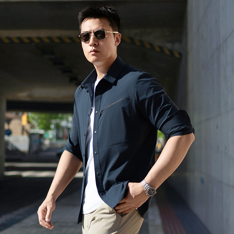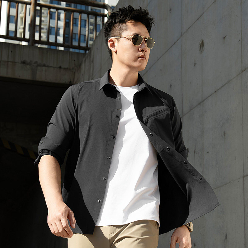 二代龙牙隐之轻竹速干休闲长袖衬衫商务通勤休闲速干纯色高弹衬衣