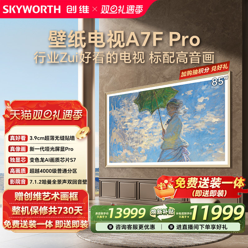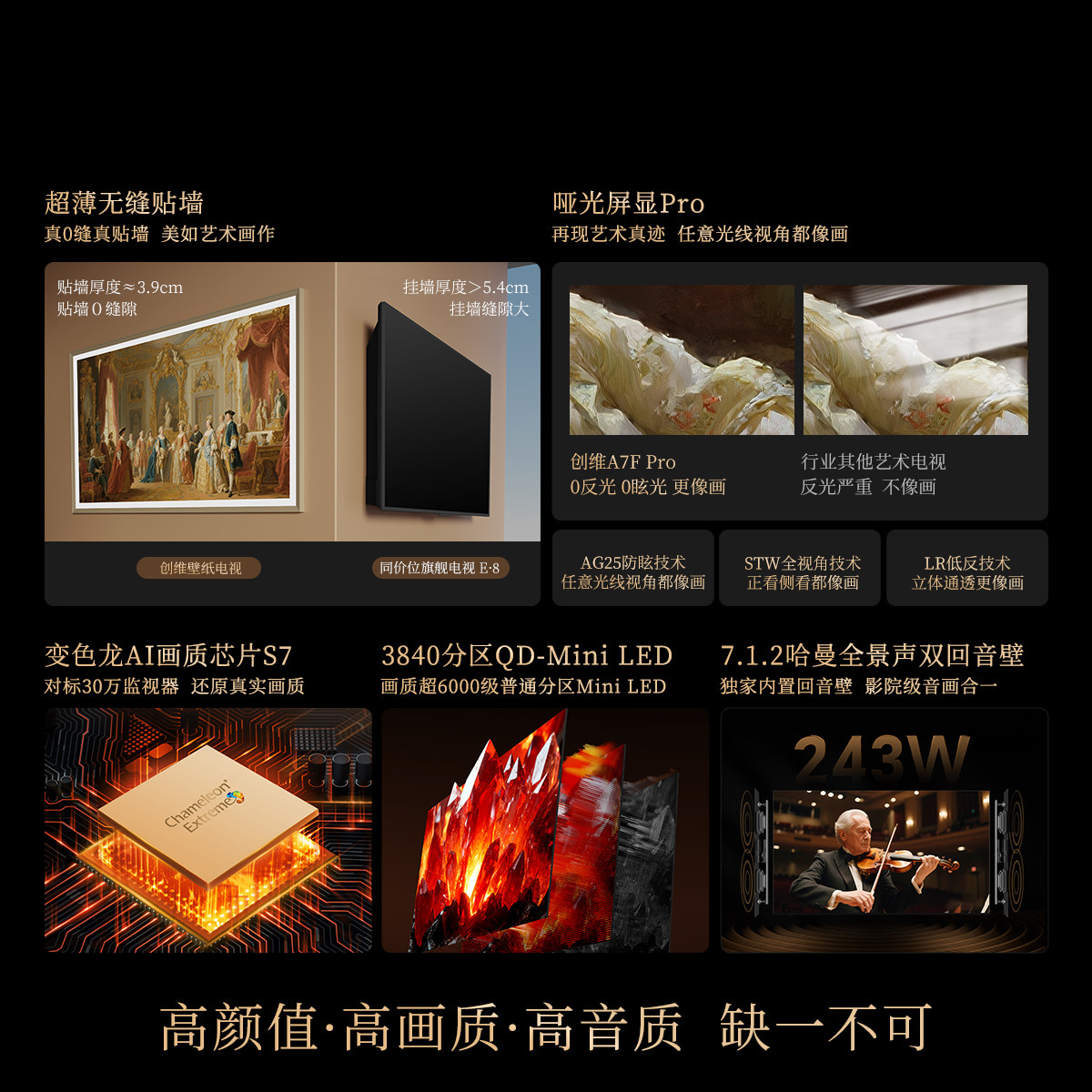 创维壁纸电视A7F Pro 85英寸超薄壁画艺术Mini LED电视机换新补贴