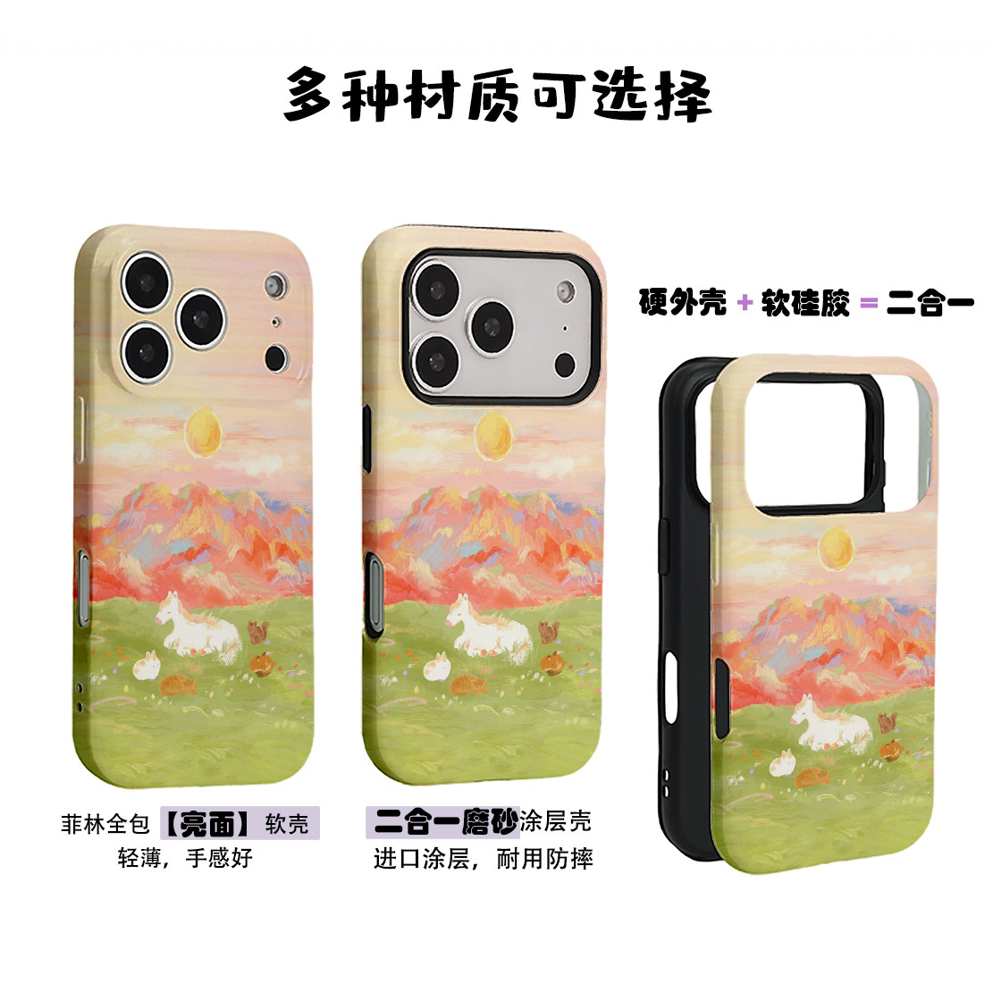 马年落日白马与小伙伴菲林二合一手机壳适用苹果17nova14华为p70mate60小米15opporen14ovivo荣耀300iPhone16