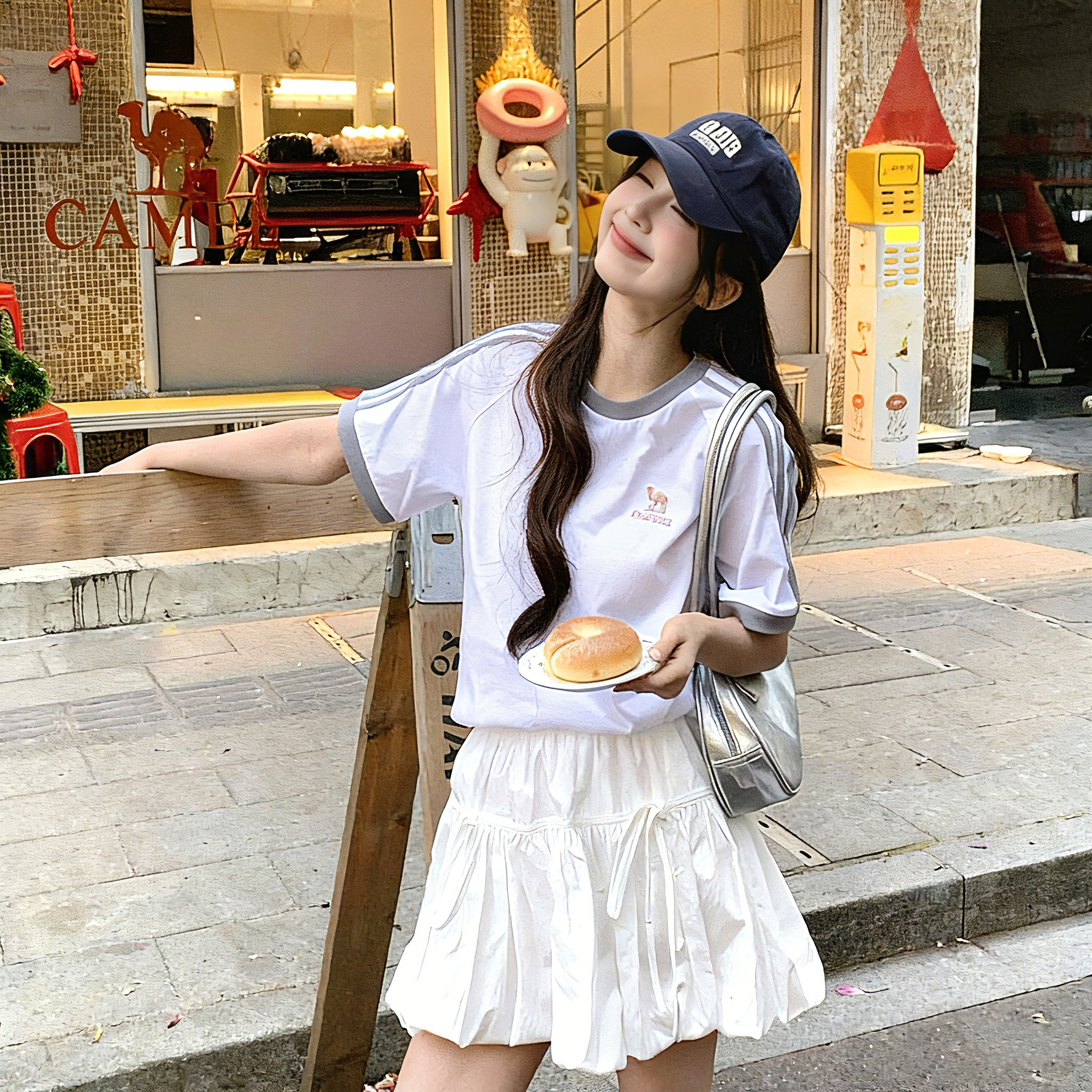 骆驼26新款纯棉T恤女春夏季短袖圆领情侣复古宽松运动休闲上衣男
