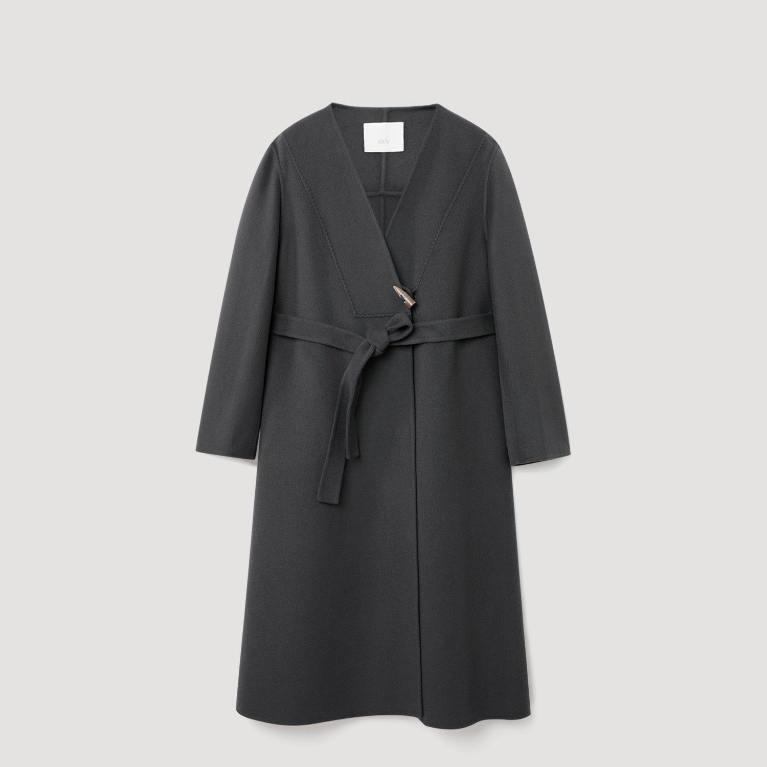 OVVOutlet秋冬热卖女装无领设计随附腰带中长羊毛双面呢大衣