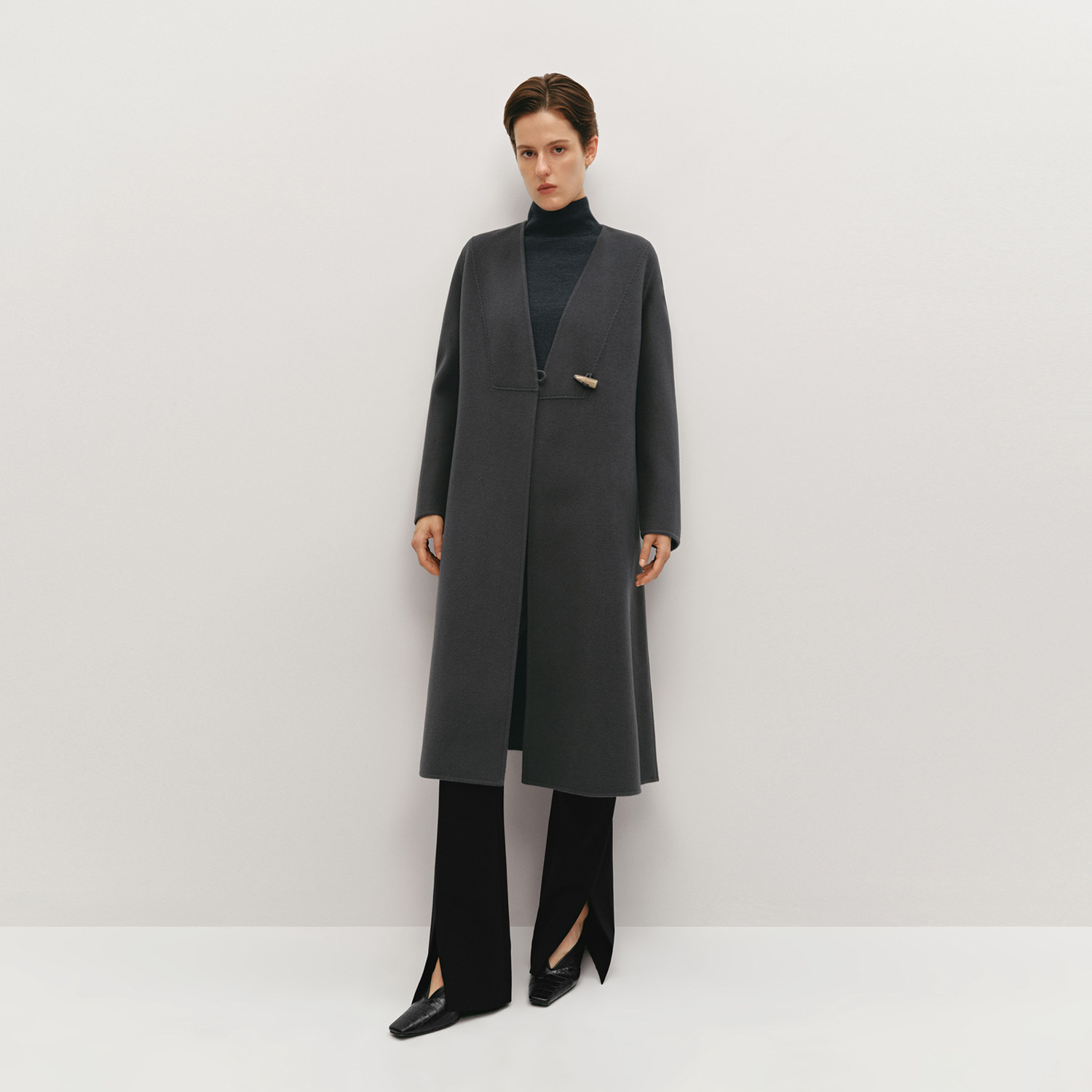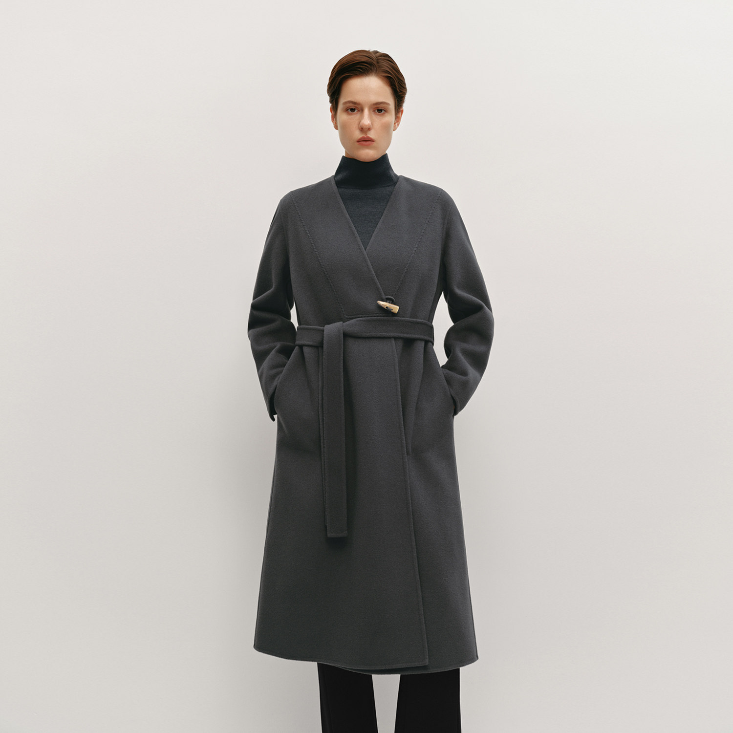 无领设计 随附腰带 羊毛面料
