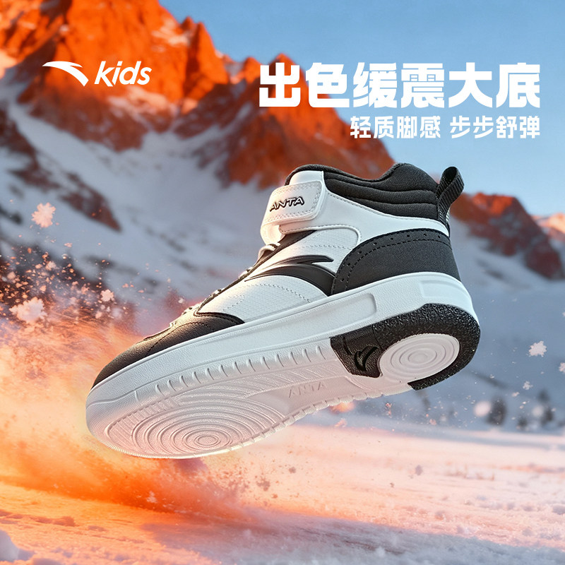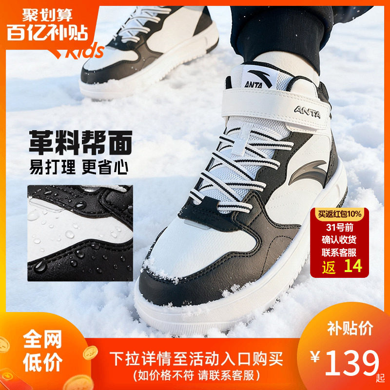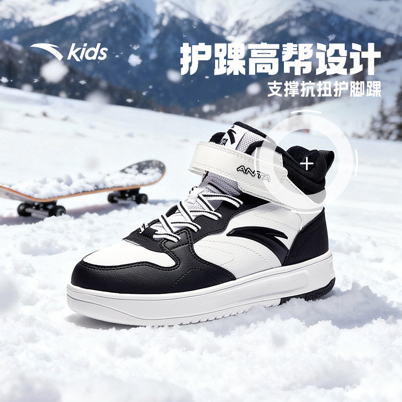 安踏儿童二棉鞋冬季新款女童鞋高帮东北加绒加厚保暖男童板鞋