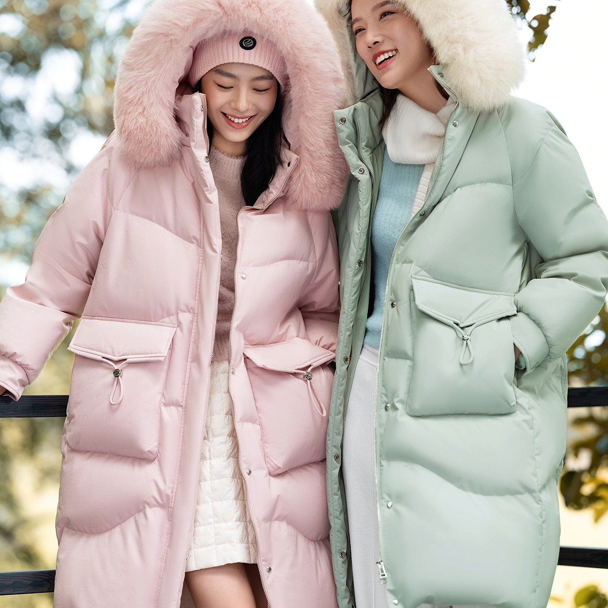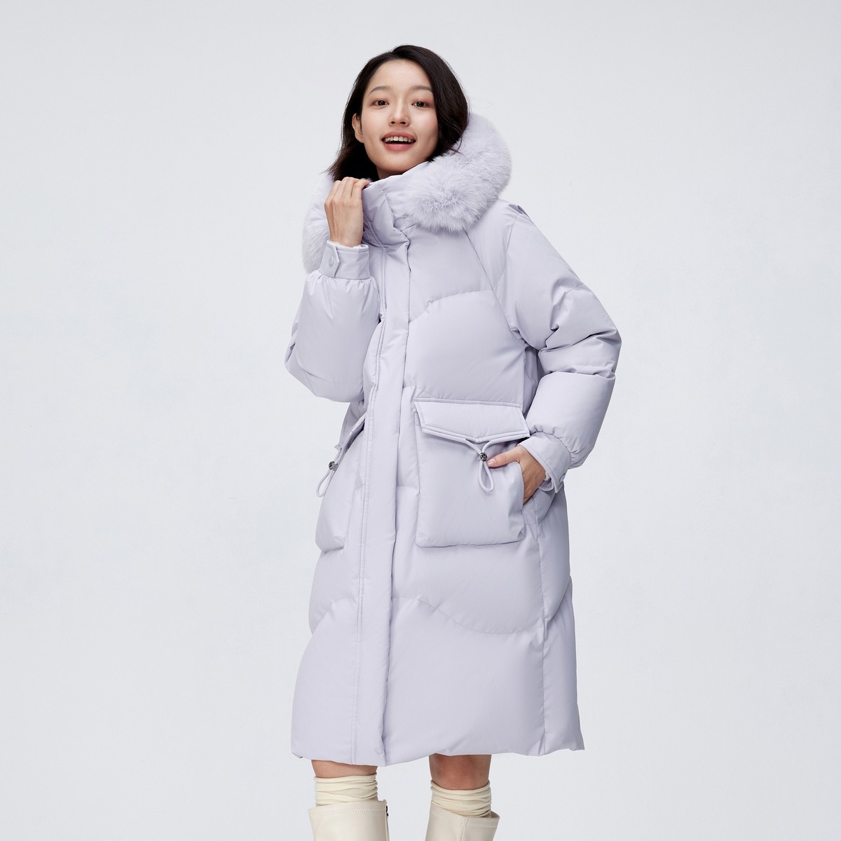 波司登2024冬女中长款时尚狐狸毛领可脱卸帽廓形休闲羽绒服