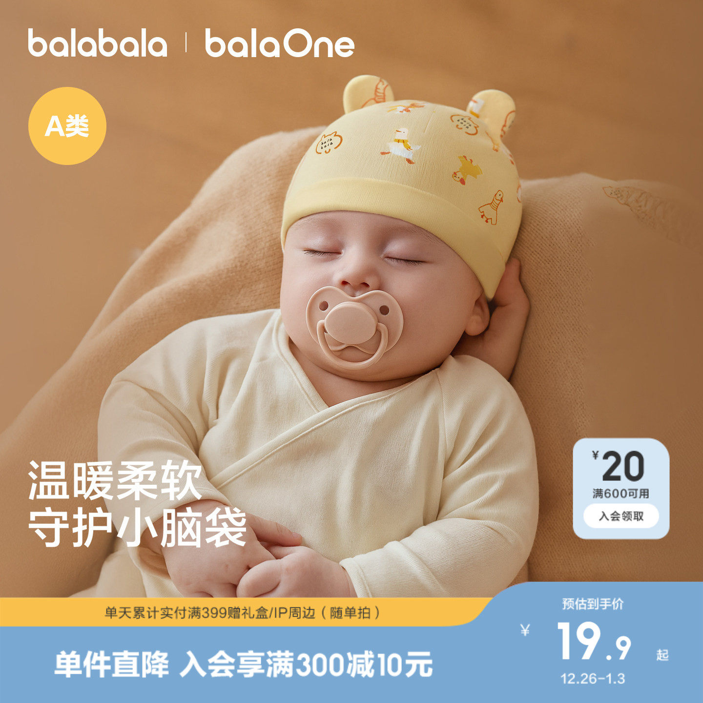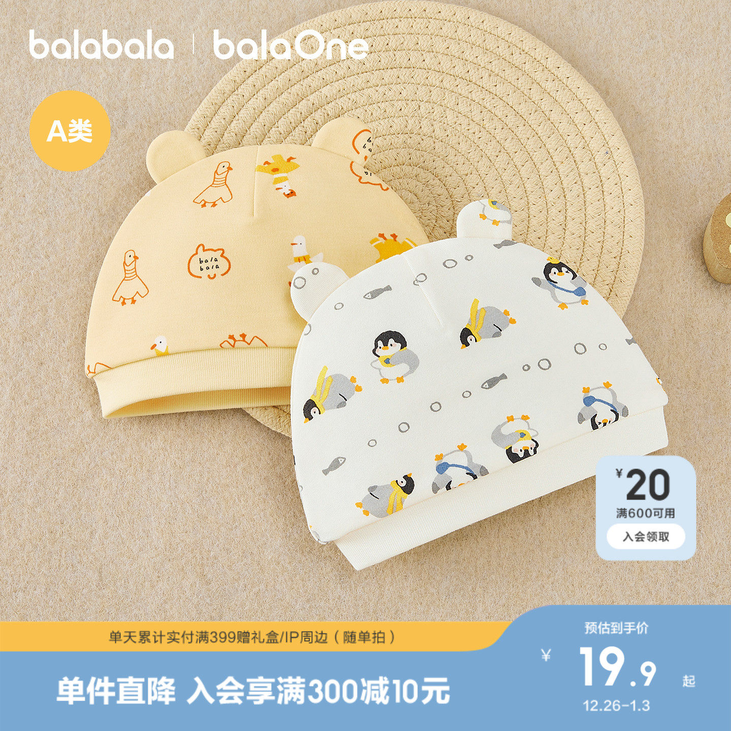 巴拉巴拉婴儿帽子新生儿宝宝胎帽针织2025新款印花亲肤柔软舒适萌