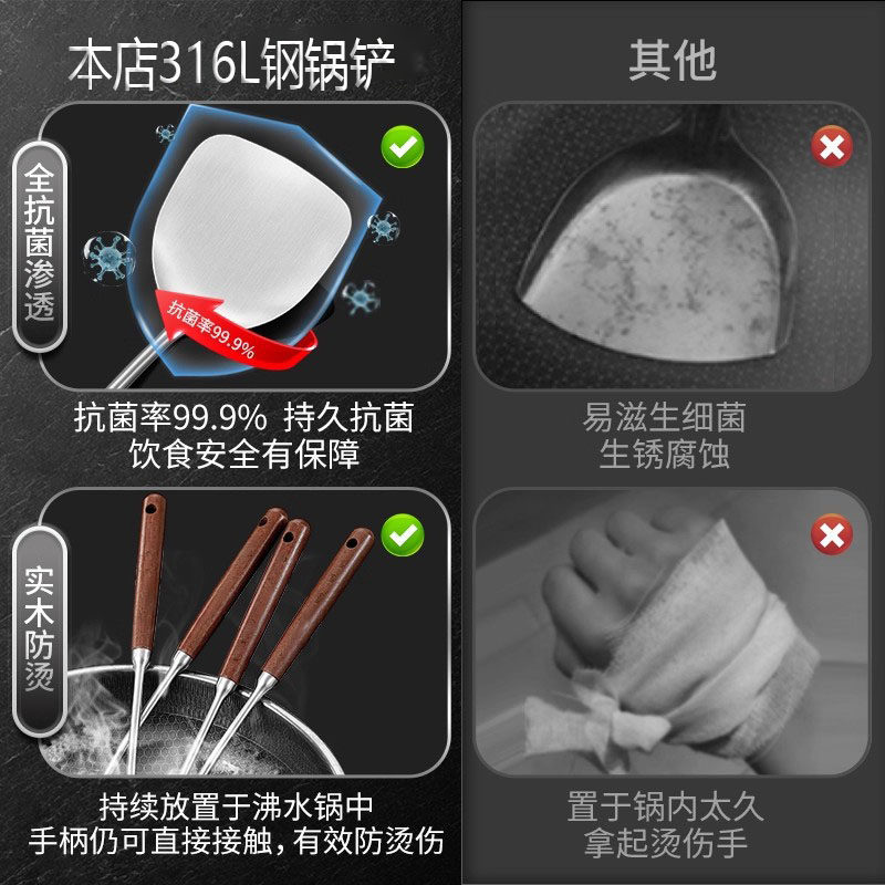 不锈钢锅铲316食品级家用炒菜铲子木柄把铲勺加厚铁锅铲厨具套装