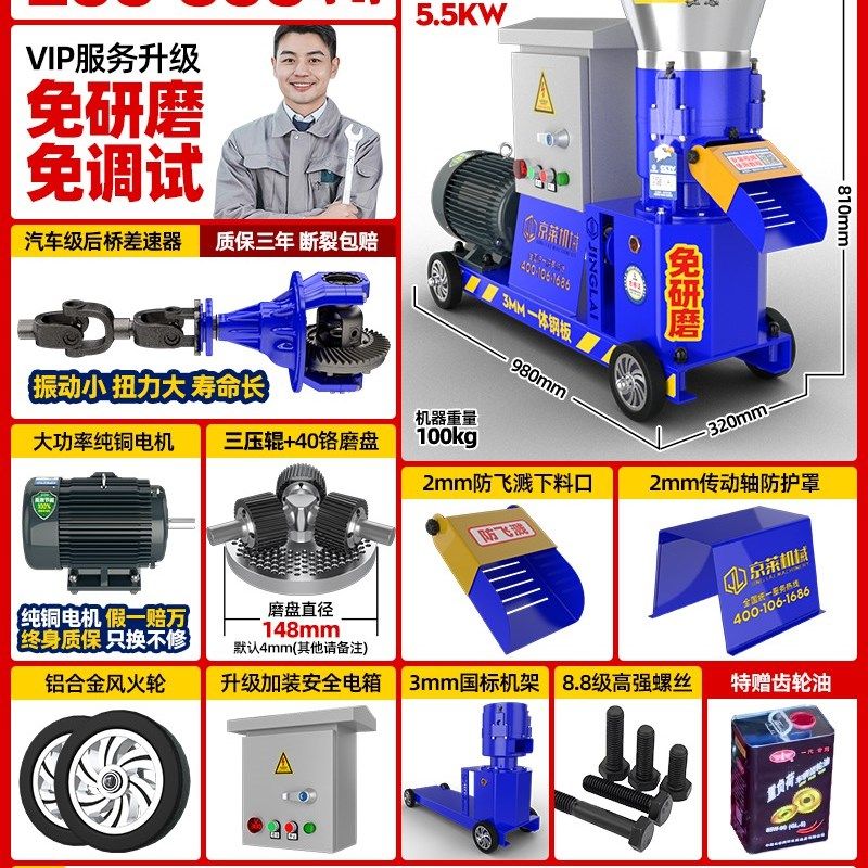 鸡鸭鹅猪牛羊饲料颗粒机小型家用220v全自动养殖设备三相干湿两用