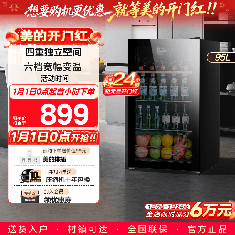 美的98小型家用冰吧茶叶饮料水果冷藏保鲜酒柜迷你办公室客厅冰箱