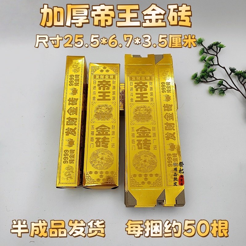 帝王金砖半成品整箱批发大号金条加厚加硬高亮金砖折纸元宝免粘
