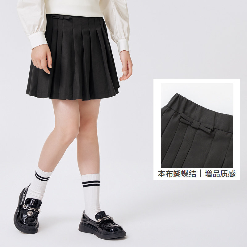 巴拉巴拉儿童裙子春秋装童装女童短裙中大童百褶裙甜美蝴蝶结时尚