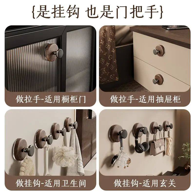 胡桃木纹真空吸盘挂钩免打孔强力承重门后厨房卫生间浴室挂衣钩