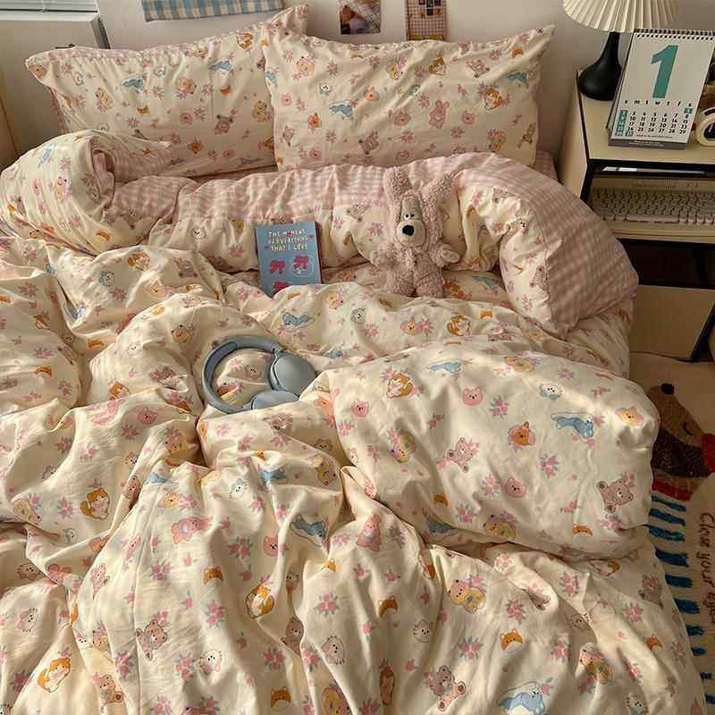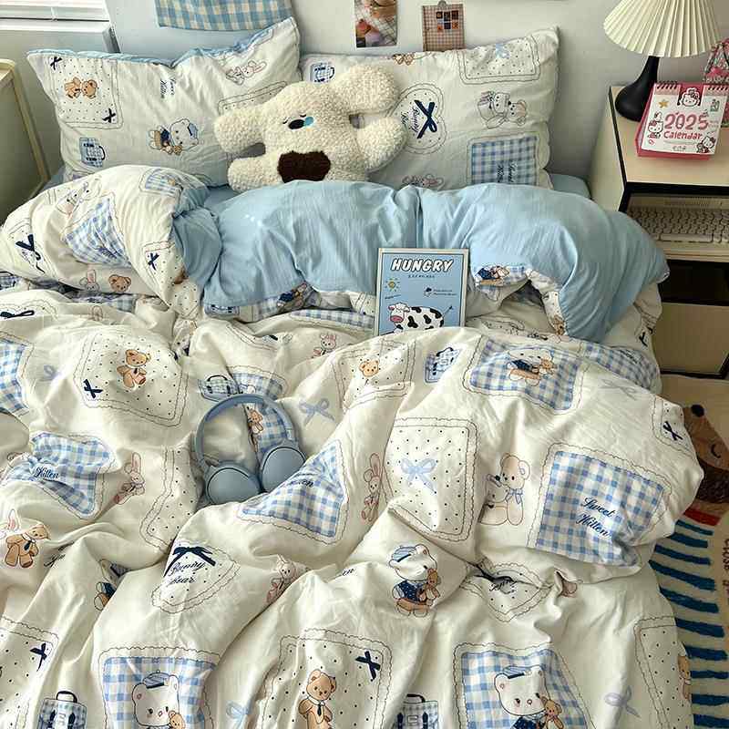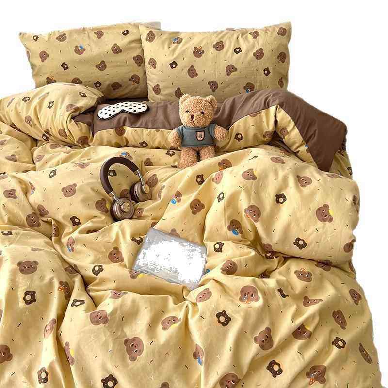 A类母婴级床上四件套纯棉全棉水洗棉被套被罩床笠学生宿舍三件套