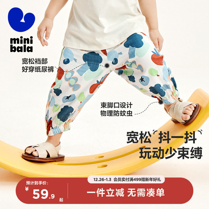 【抖抖裤】迷你巴拉巴拉男童女童宝宝裤子夏季舒适萌趣防蚊长裤
