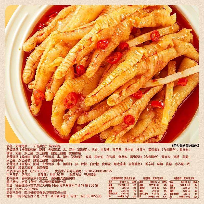 比比赞无骨鸡爪柠檬酸辣去骨凤爪脱骨网红解馋即食零食休闲小吃