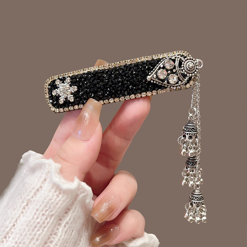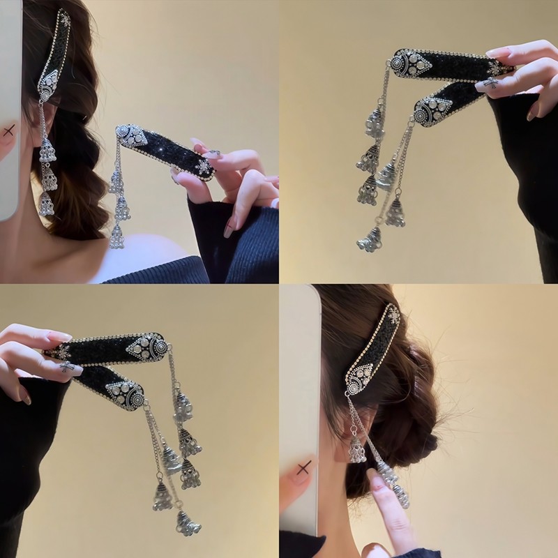新中式流苏铃铛发夹女2025新款高端苗疆民族风侧边刘海夹头饰短发