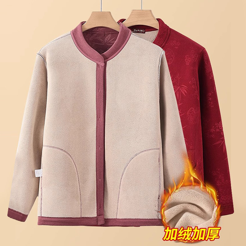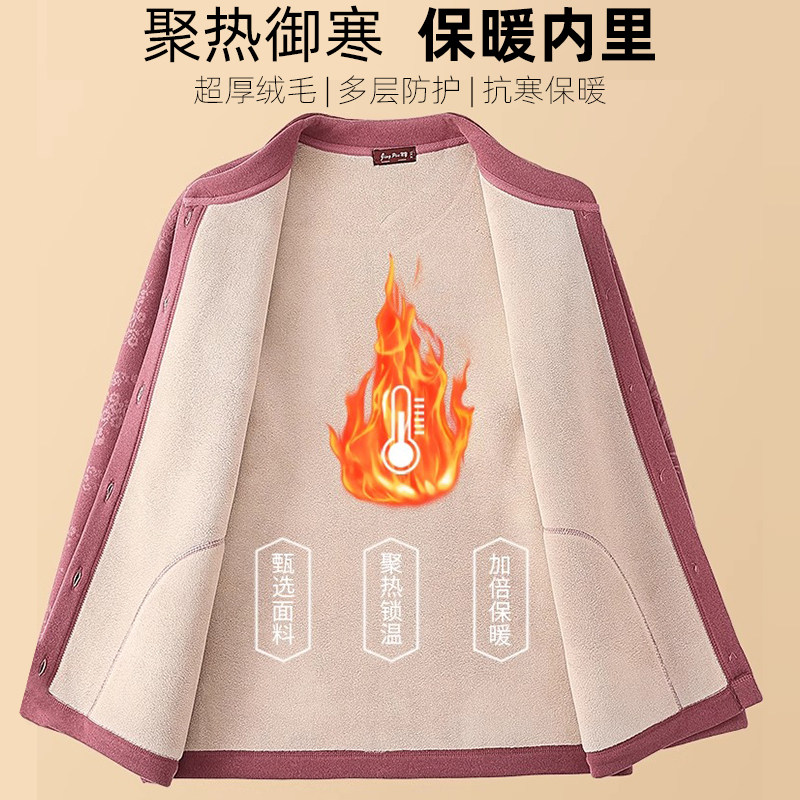 中老年妈妈秋冬上衣女加绒开衫老人婆婆保暖冬装洋气棉衣老年衣服