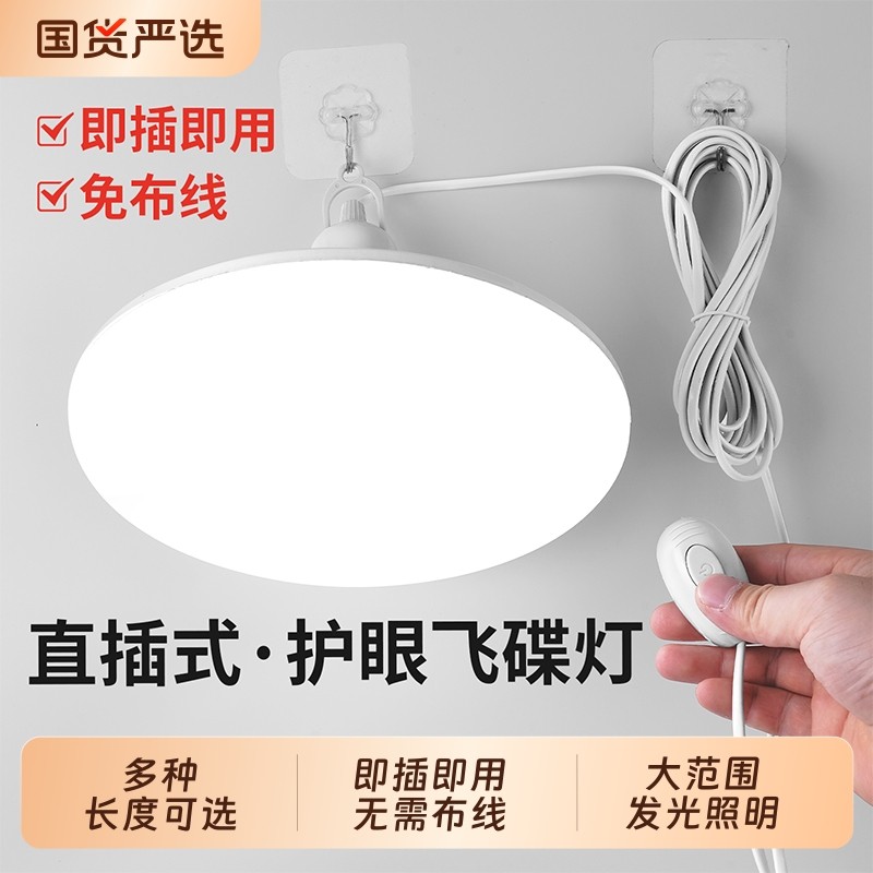全光谱家用插电式照明带线开关悬挂E27螺口led飞碟灯泡暖光护眼