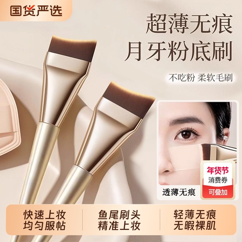 尔木萄鱼尾薄弧一字型粉底刷扁平头不吃粉刀锋无痕粉底液化妆刷子