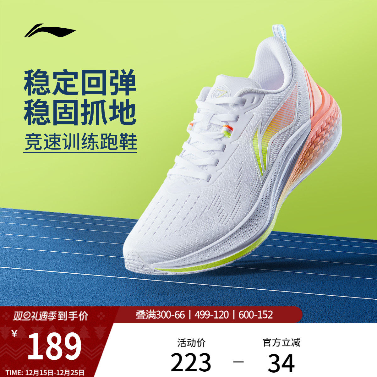 李宁吾跃3.0 | 跑步鞋女款中考专用减震轻便透气厚底休闲运动鞋