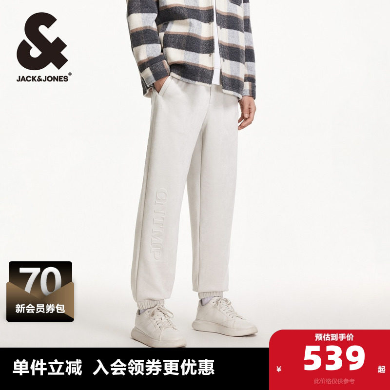 杰克琼斯outlets春季新款字母纯色长裤子休闲卫裤宽松束脚裤男装