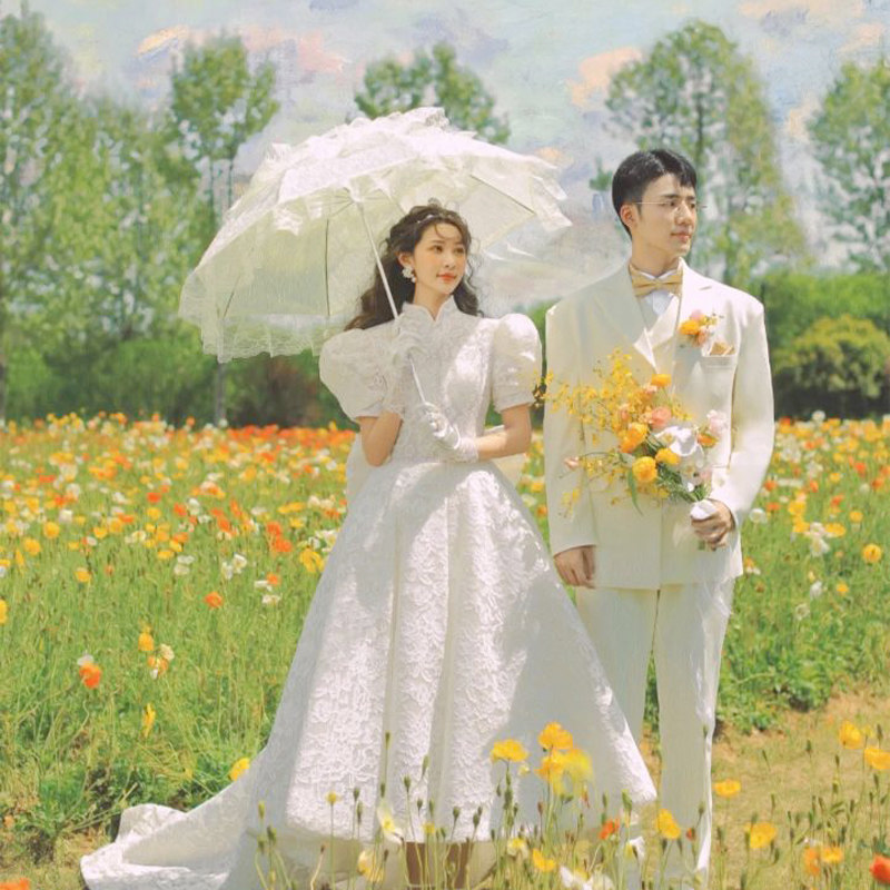 婚纱拍照摄影道具法式花边伞欧式新娘伞结婚蕾丝白色绣花遮阳伞