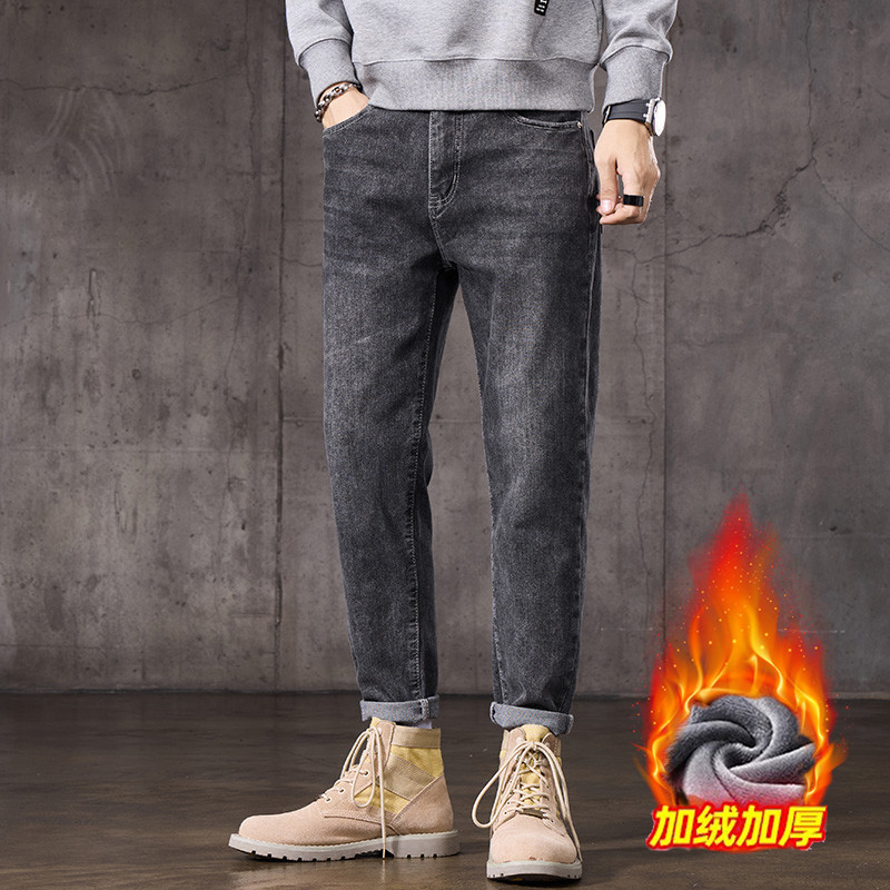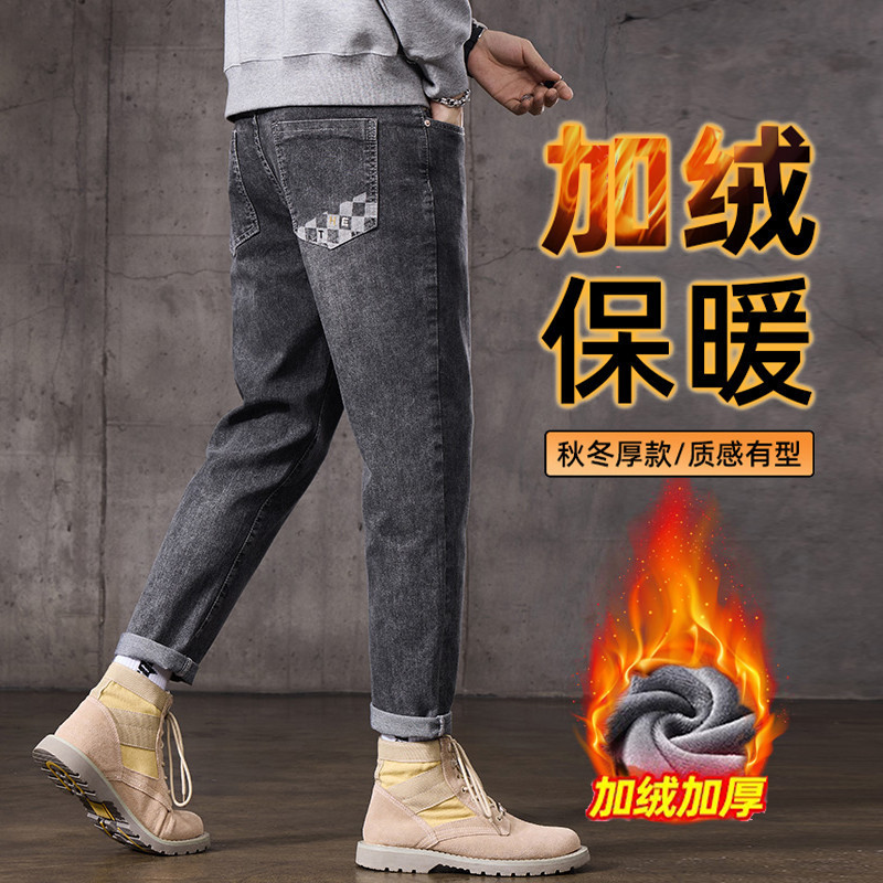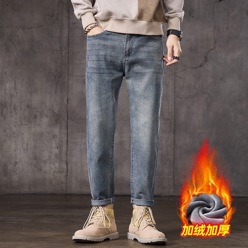 森柔牛仔|森马牛仔裤男款磨毛小脚裤子通勤基础百搭冬季长裤弹力