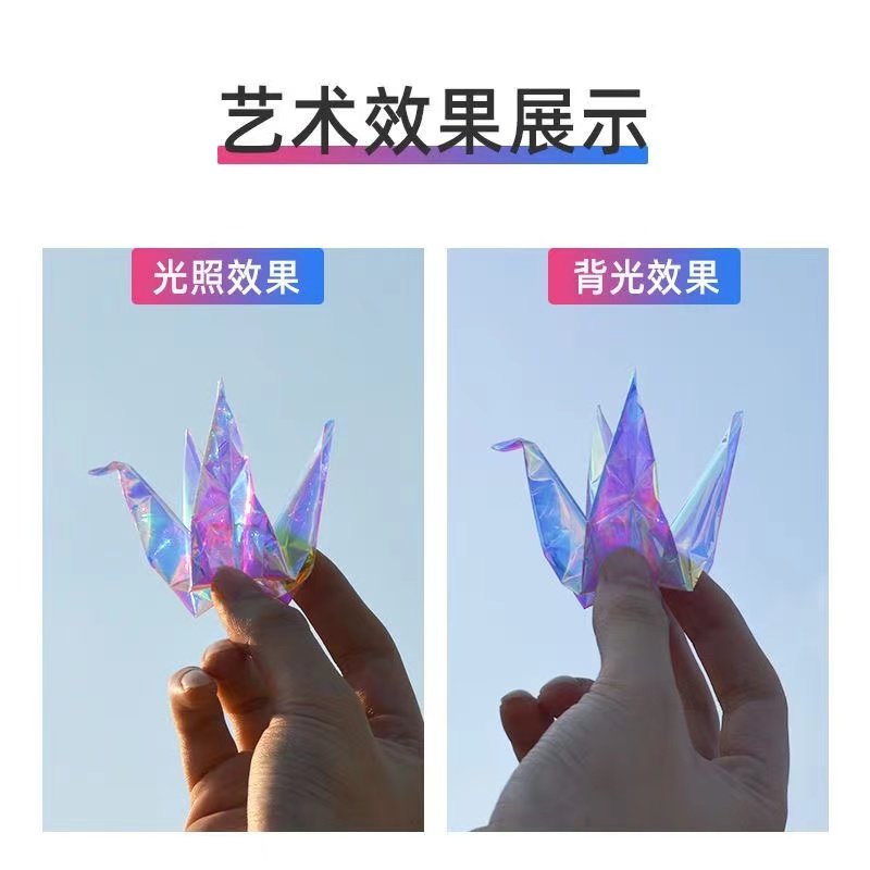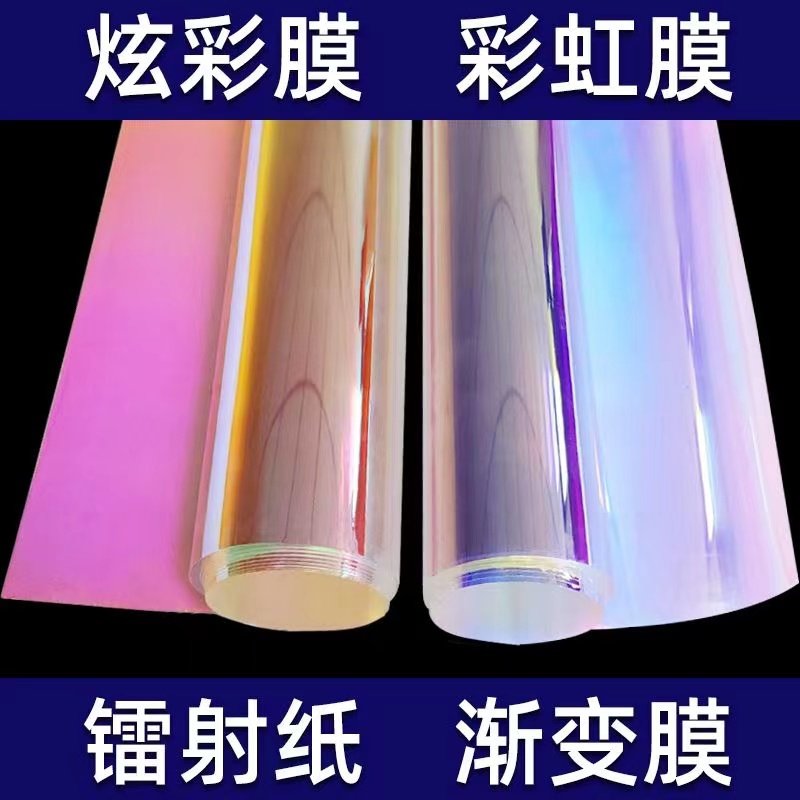 炫彩膜幻彩镭射纸七彩玻璃纸贴膜透光自粘手工彩虹膜彩色透明贴纸