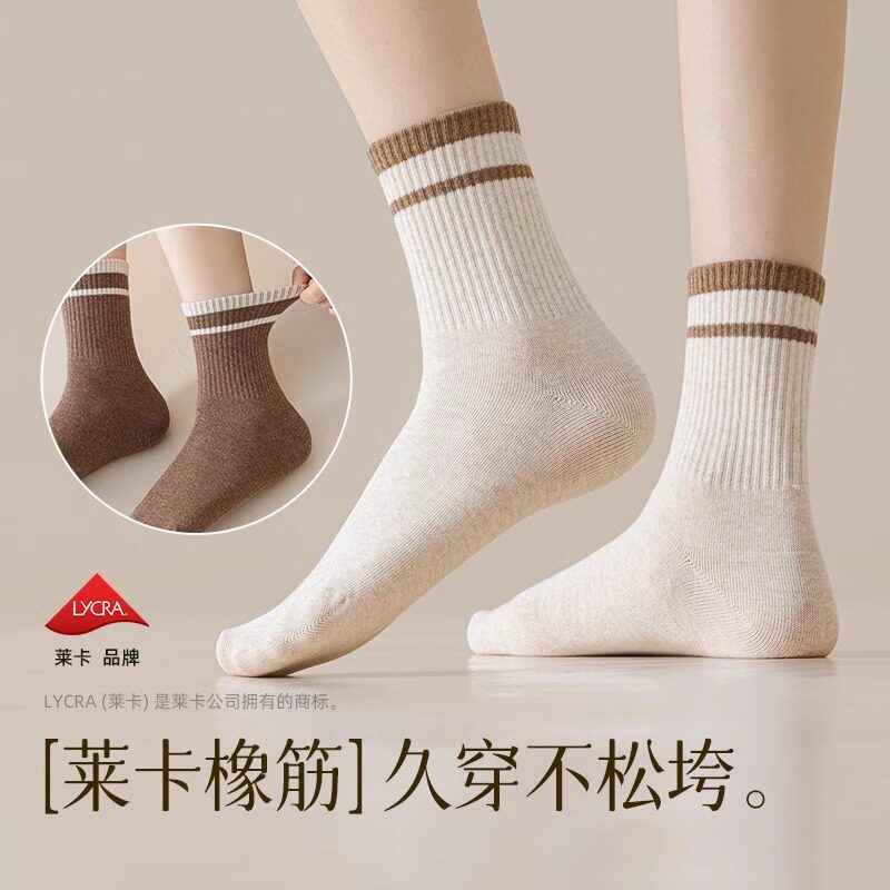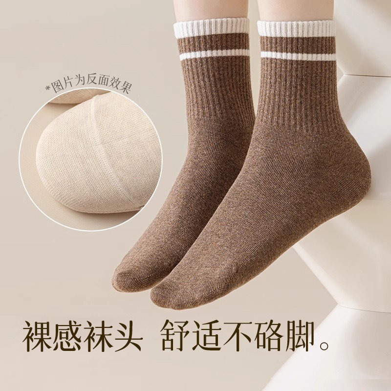 袜子女纯棉中筒袜2025新款爆款秋冬季美拉德防臭运动无骨保暖长袜
