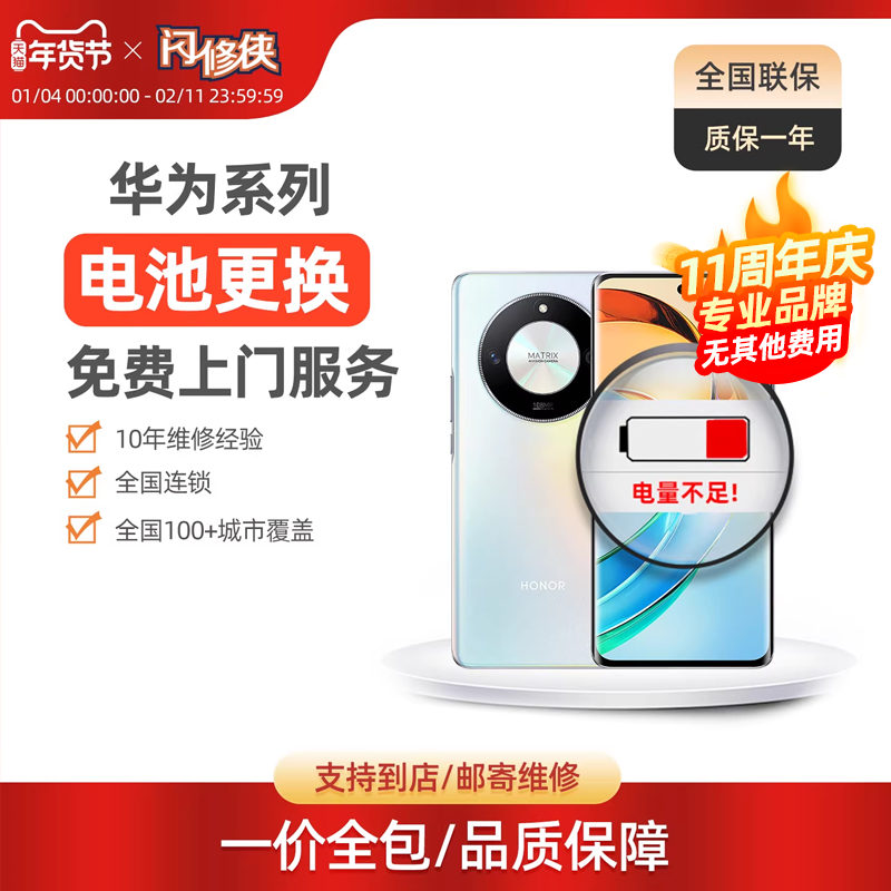 闪修侠华为mate电池P30/P40/Nova荣耀换免费上门维修原装质保90天
