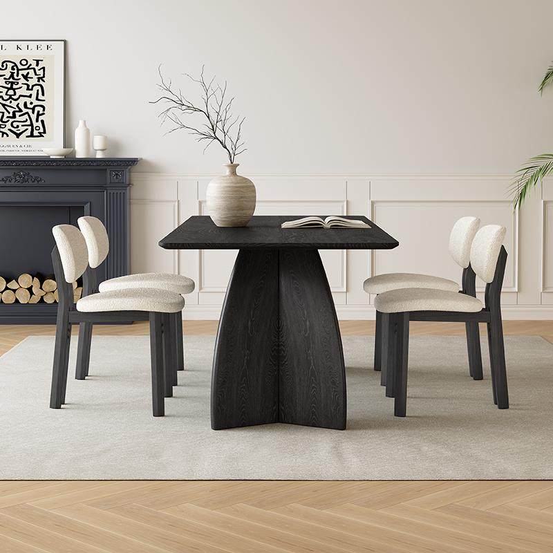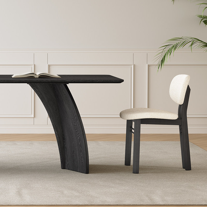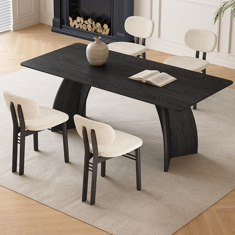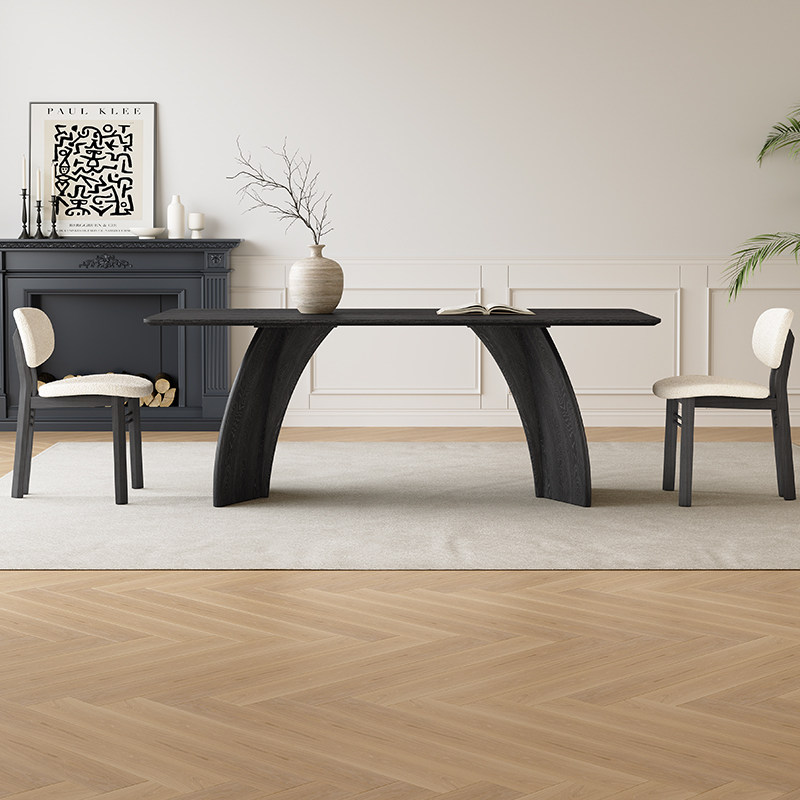 黑色实木餐桌长方形大板家用白蜡木玛奇朵法式复古全实木面餐桌