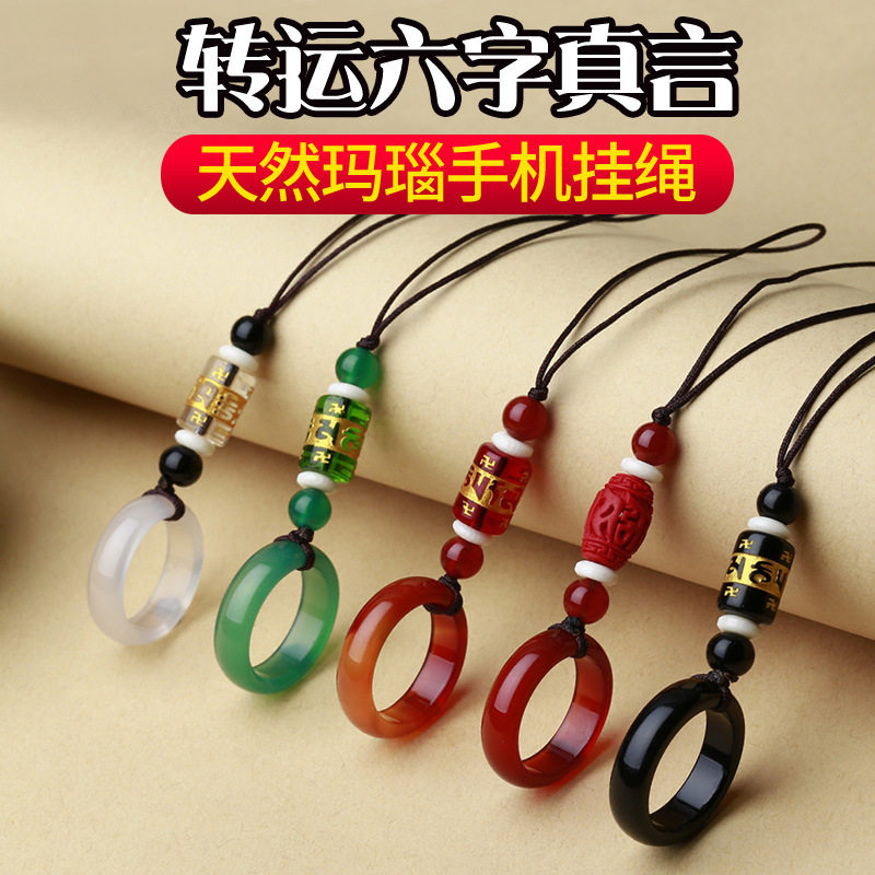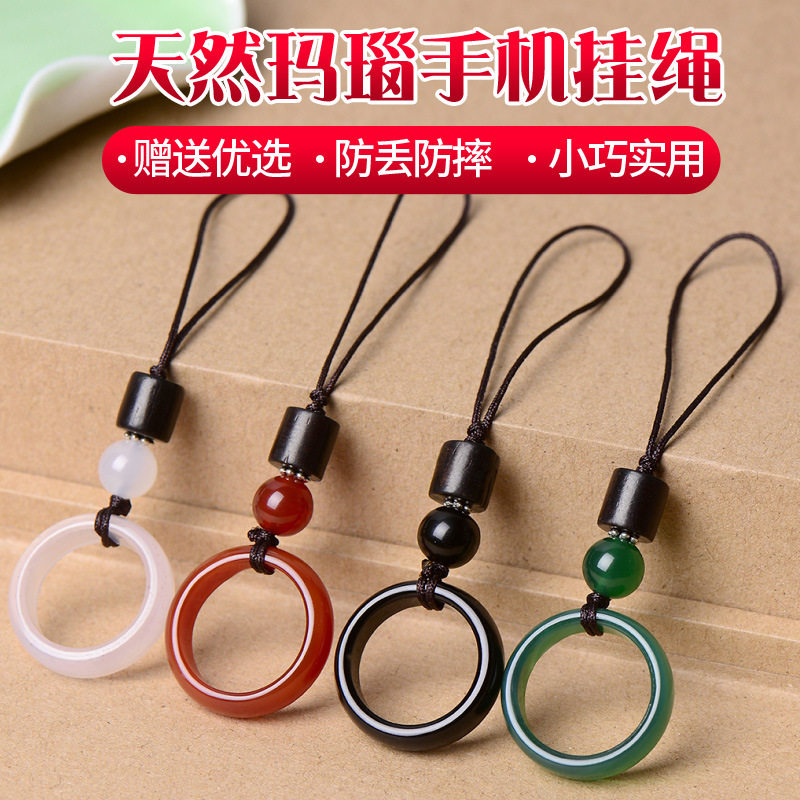 新款天然玛瑙玉石情侣手机链国潮配饰品中国风手机壳挂绳指环扣