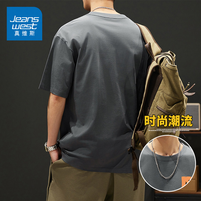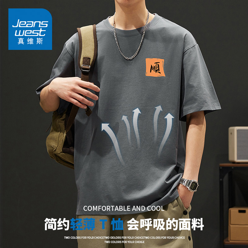 KZH真维斯重磅短袖T恤男夏季新款宽松打底衫白色纯棉印花休闲上衣
