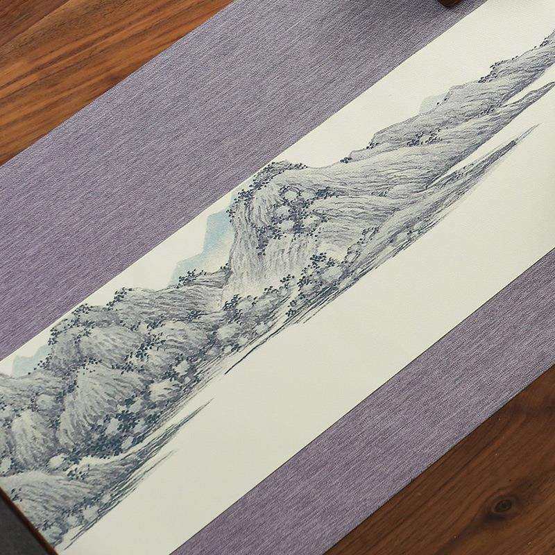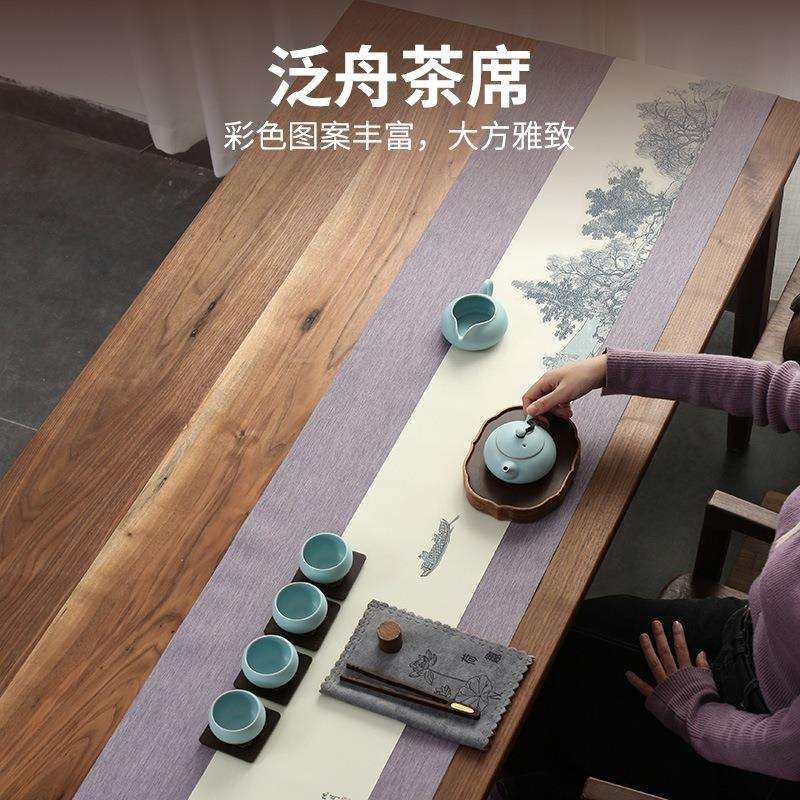 纯色防水茶席桌旗手绘禅意棉麻中式麻布茶桌布加长茶道茶旗垫布艺