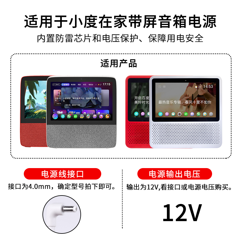 适用于小度在家1C1S智能带屏音箱12V2A电源线适配器充电器线音响通用X8X6专用弯头