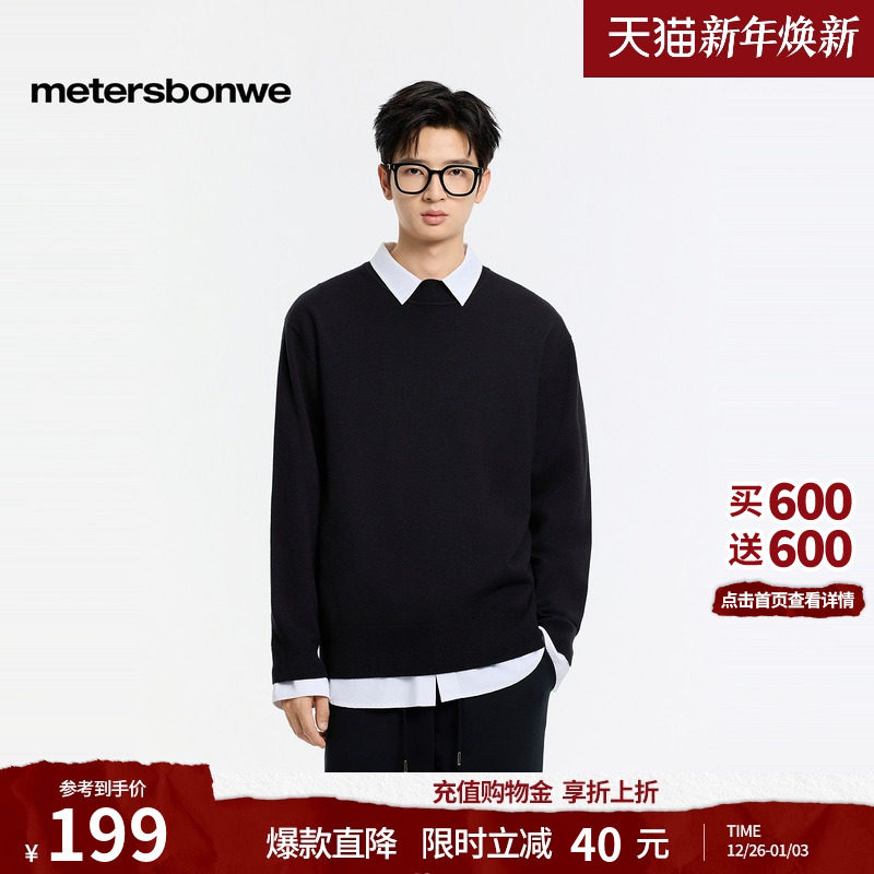美特斯邦威打底毛衫男2025冬季新款休闲通勤小高领纯色套头毛衣