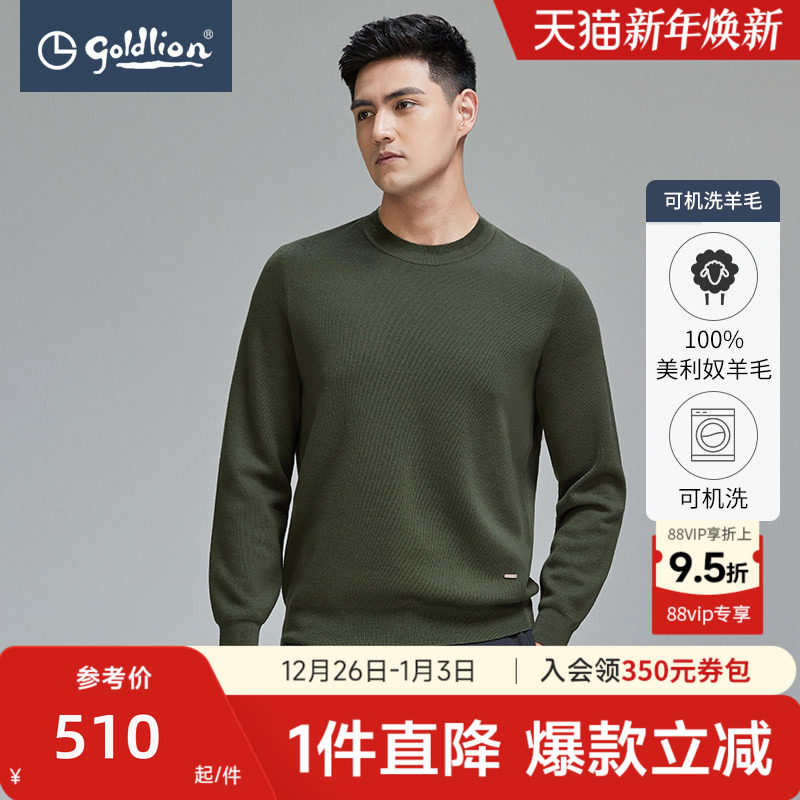金利来秋冬新款男士可机洗羊毛纯色商务休闲套头长袖毛衣针织衫男