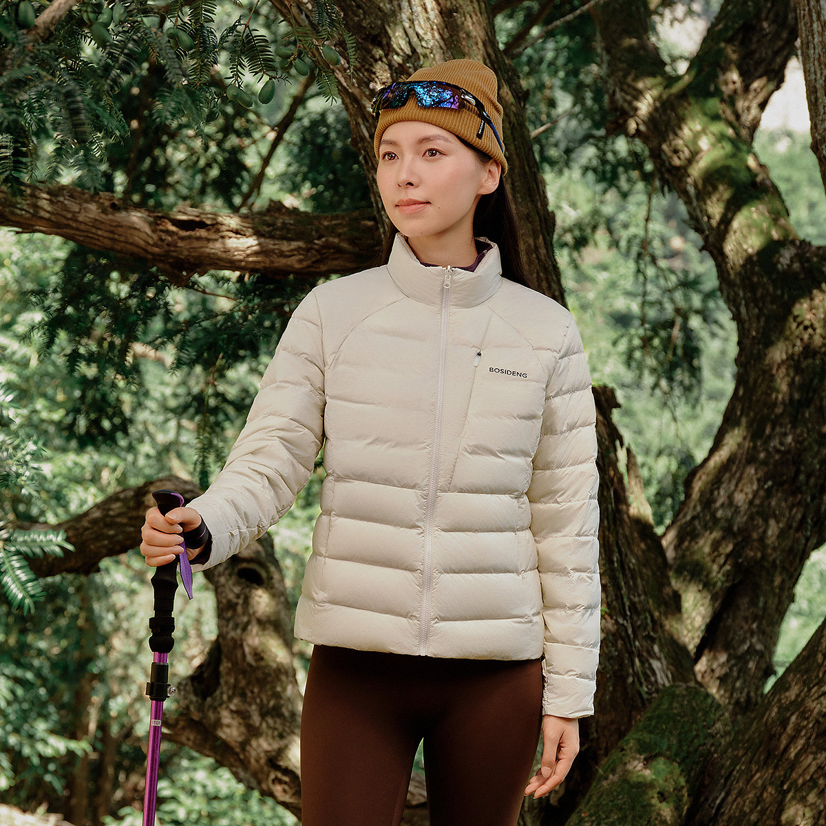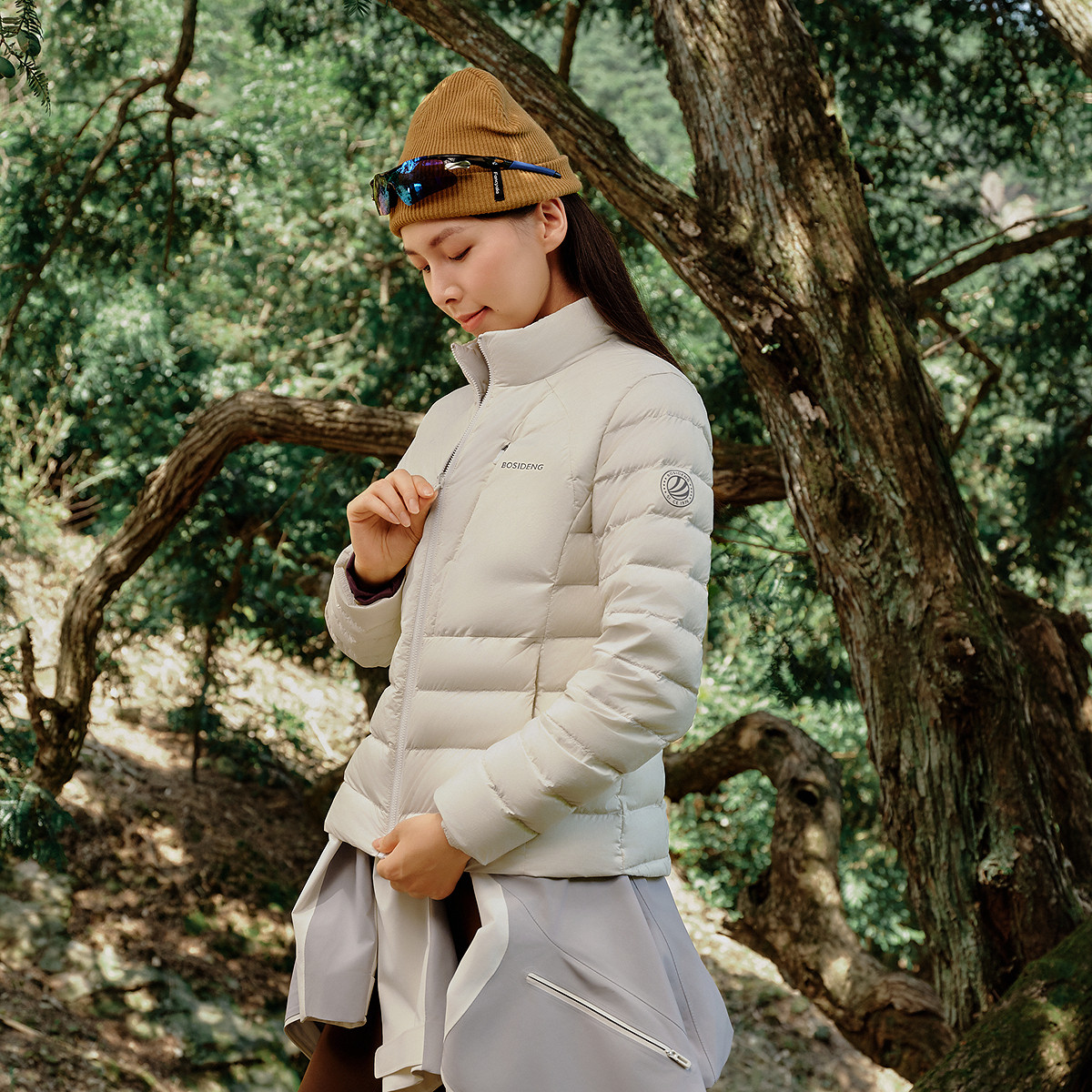 鸭鸭轻薄羽绒服女2025年秋冬反季短款立领修身舒适上衣内胆外套J