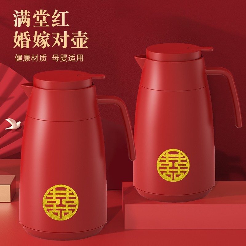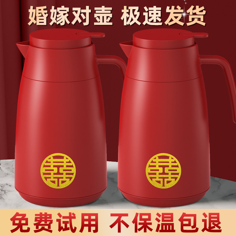 保温壶家用结婚红色陪嫁一对热水壶玻璃内胆热水瓶保温水壶烧水