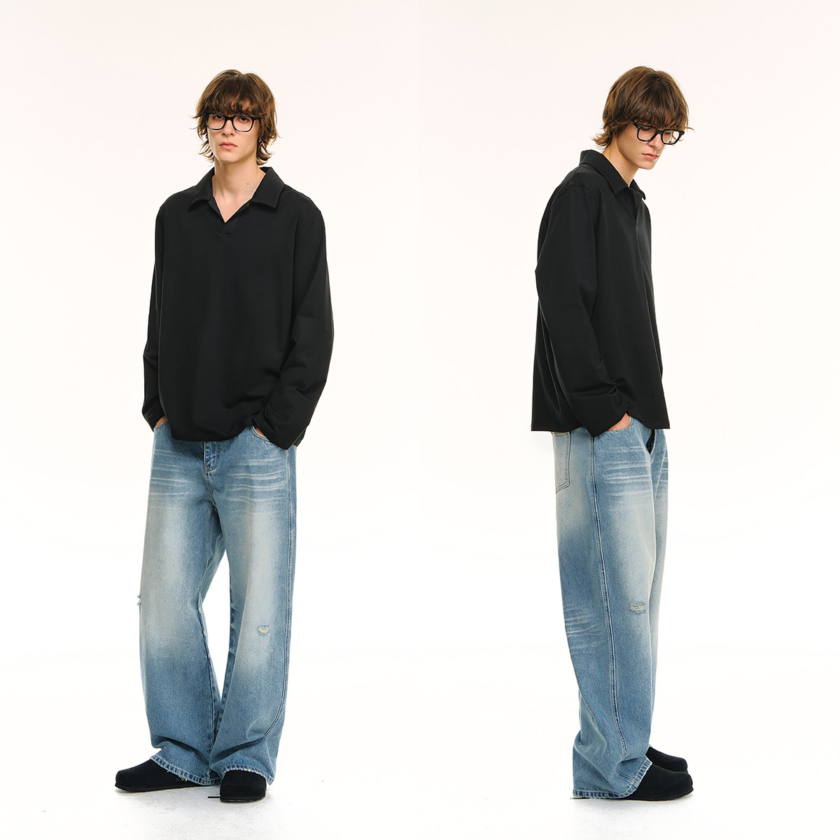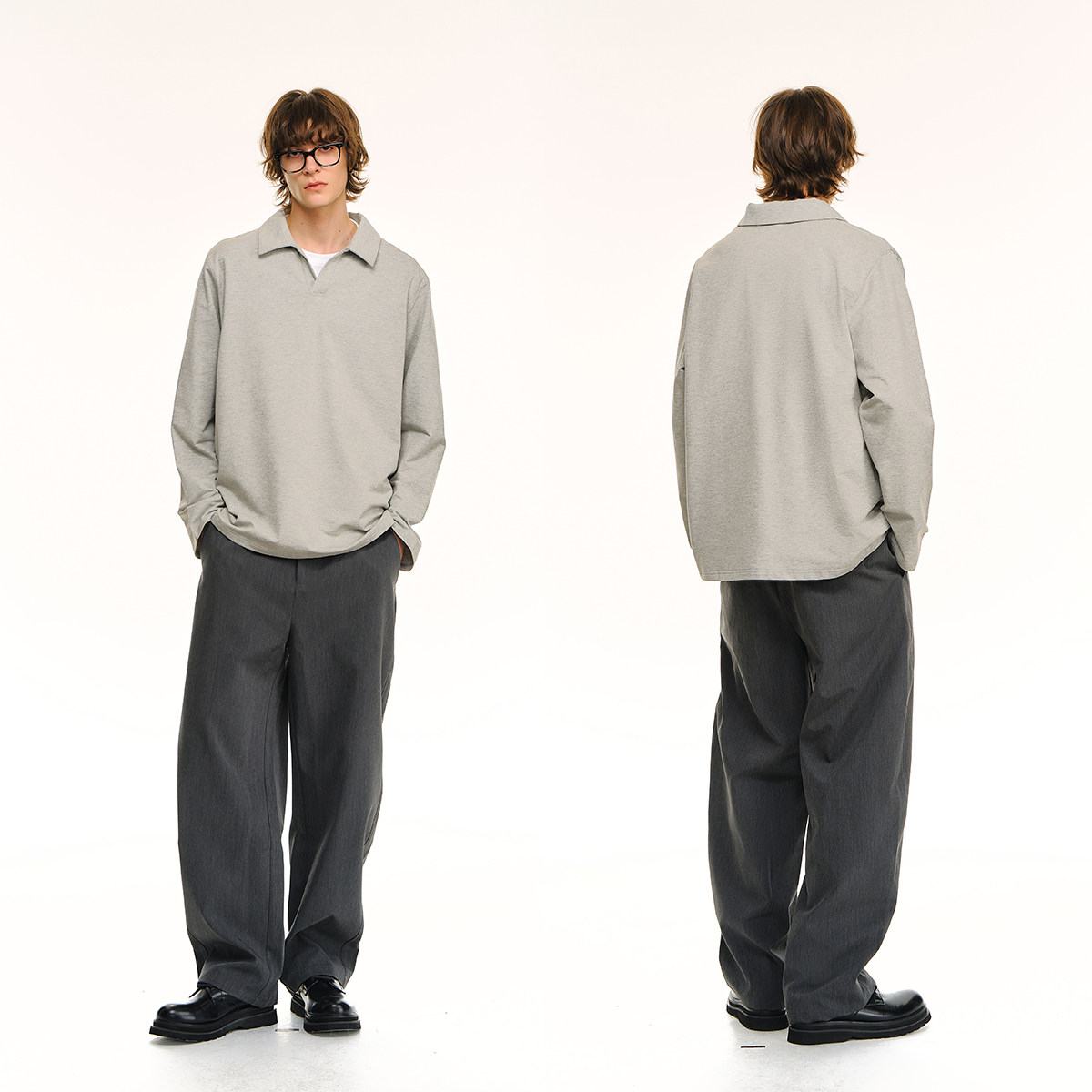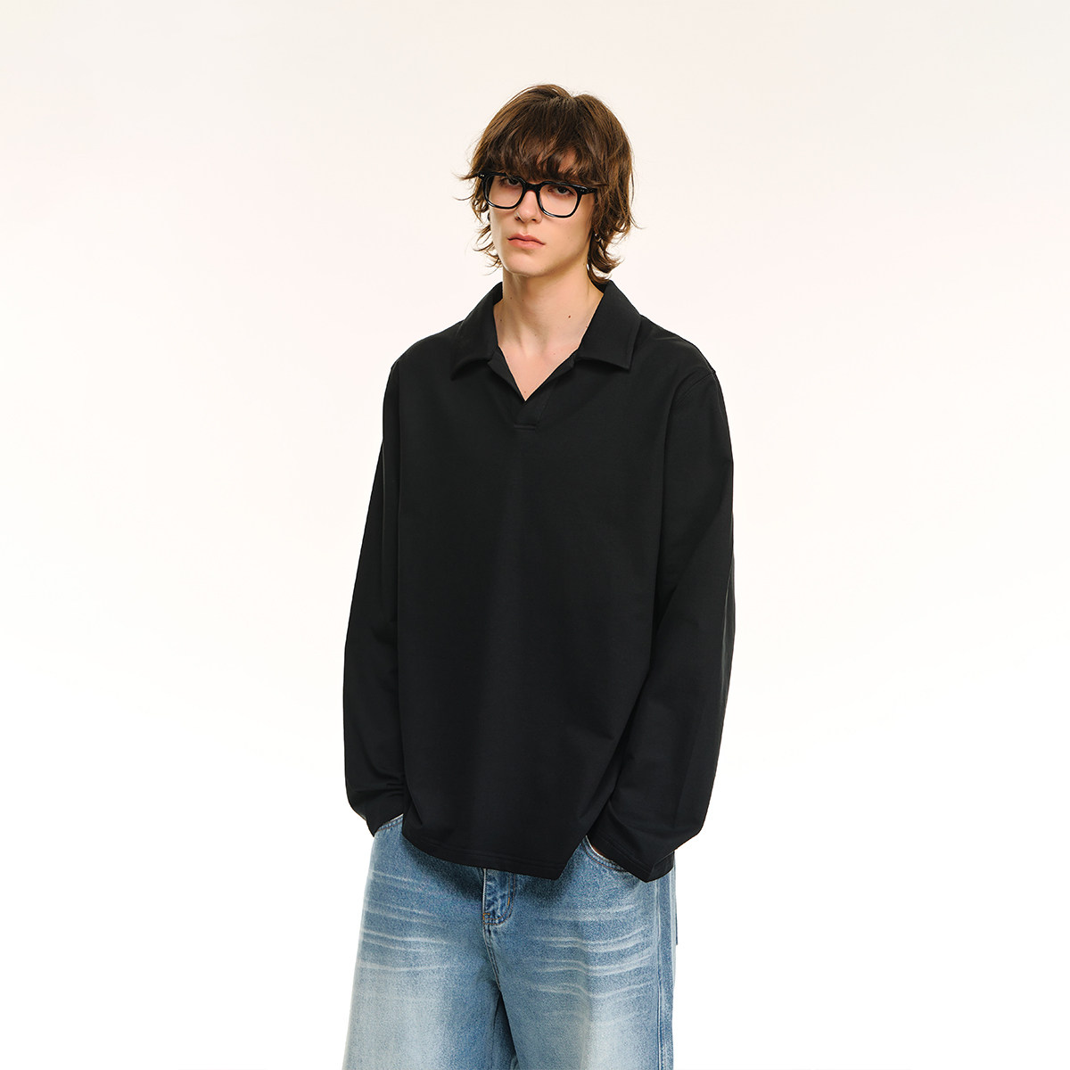 CLIMAX VISION棉氨混纺微弹古巴衬衫领慵懒松弛休闲宽松长袖T恤