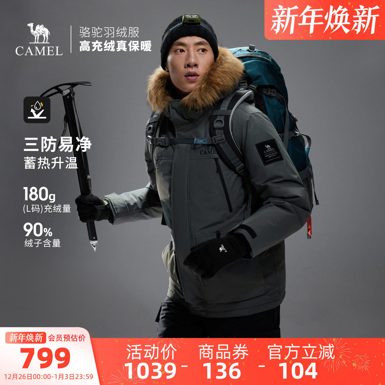 【鹅绒】骆驼羽神PRO户外羽绒服冬季新款女款男款防风外套面包服