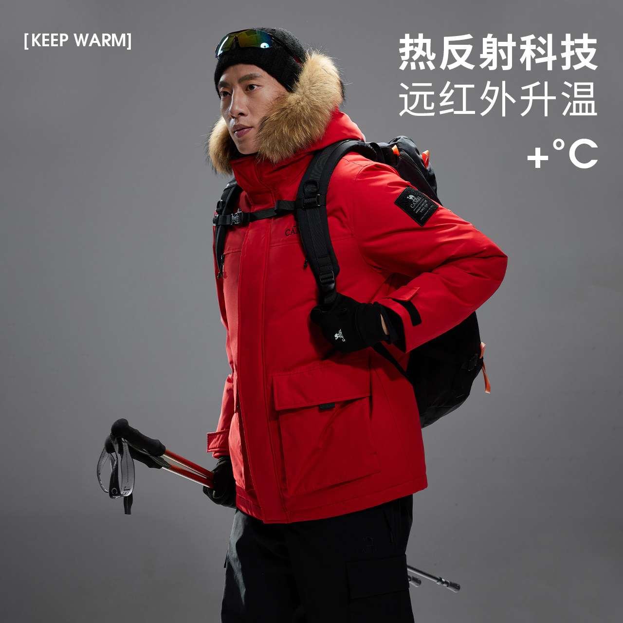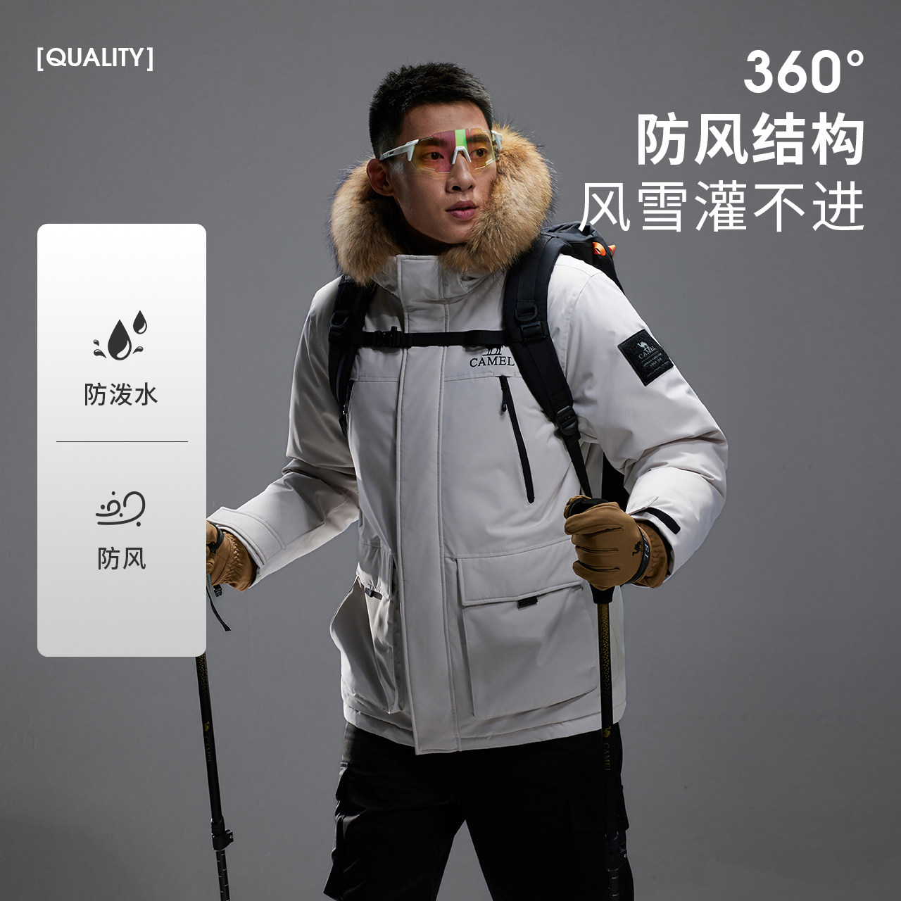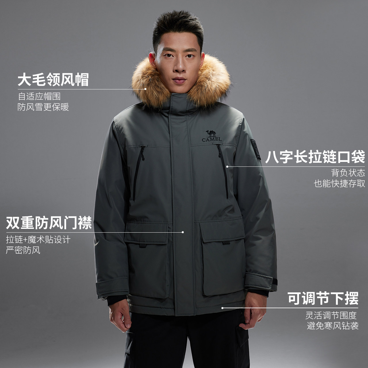 骆驼户外羽绒服2025冬季女款男款三防加厚保暖大毛领派克服