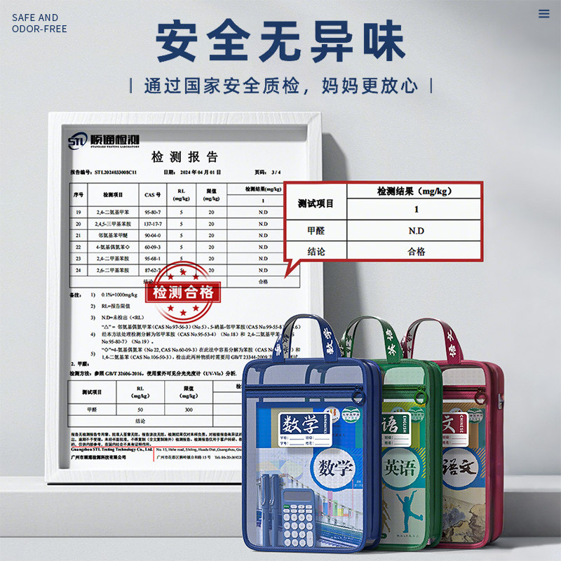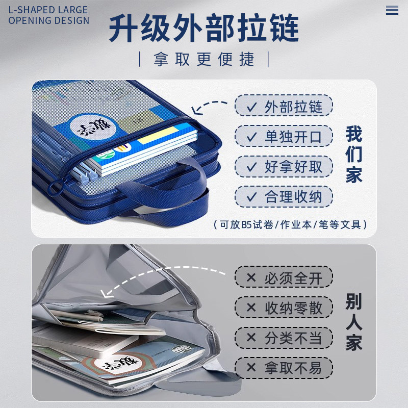 L型科目分类袋分科文件袋初中生专用必备学习用品学科分类袋试卷收纳袋大容量语数英科目资料袋小学生拉链式