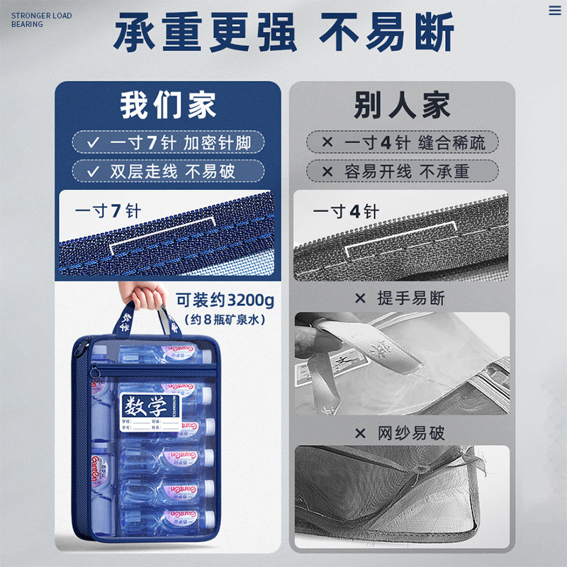 网格文件袋加厚透明网格拉链袋A4试卷收纳袋学生用考试文具袋防水笔袋办公用品批发公文档案袋资料袋包邮