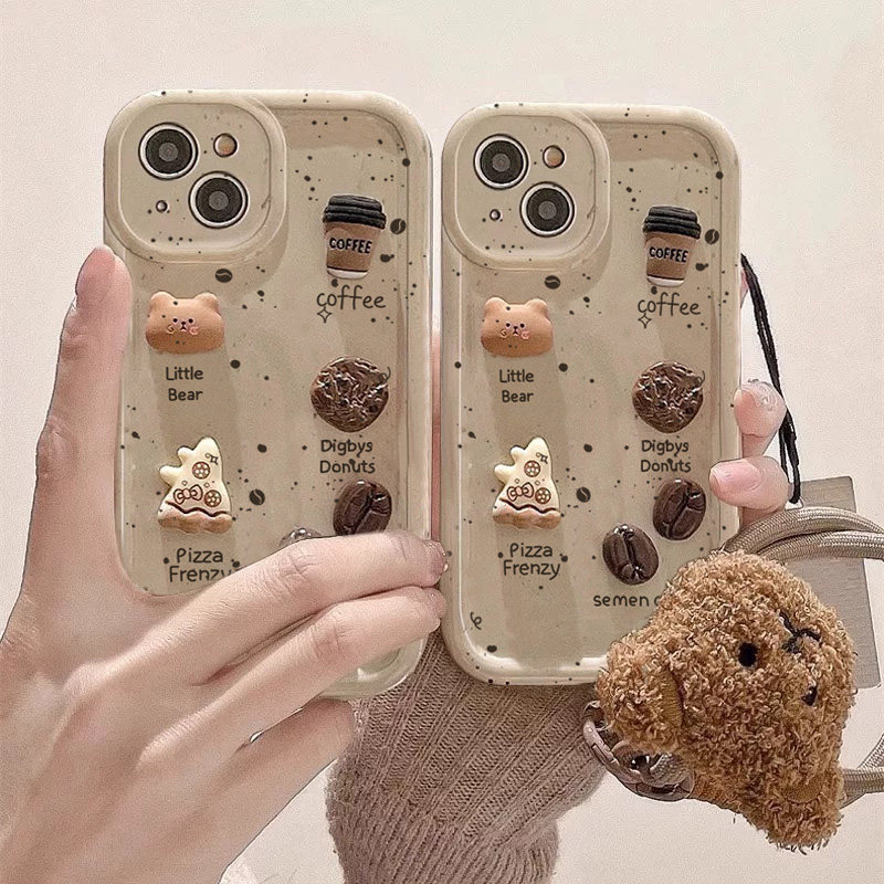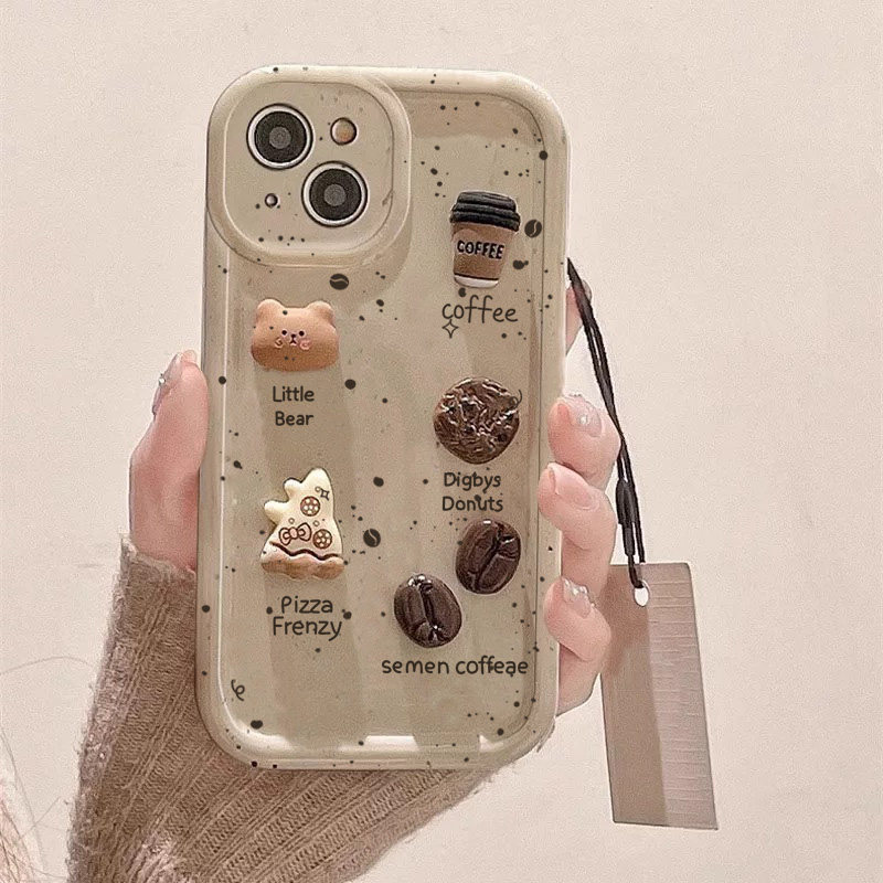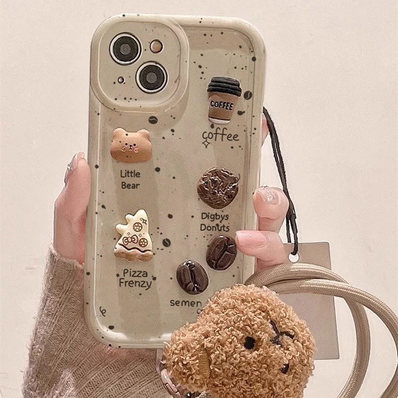立体咖啡饼干适用iPhone苹果16pro手机壳12/11pro全包max挂绳女款13/14plus防摔7公仔8简约15pro卡通6s软壳pm
