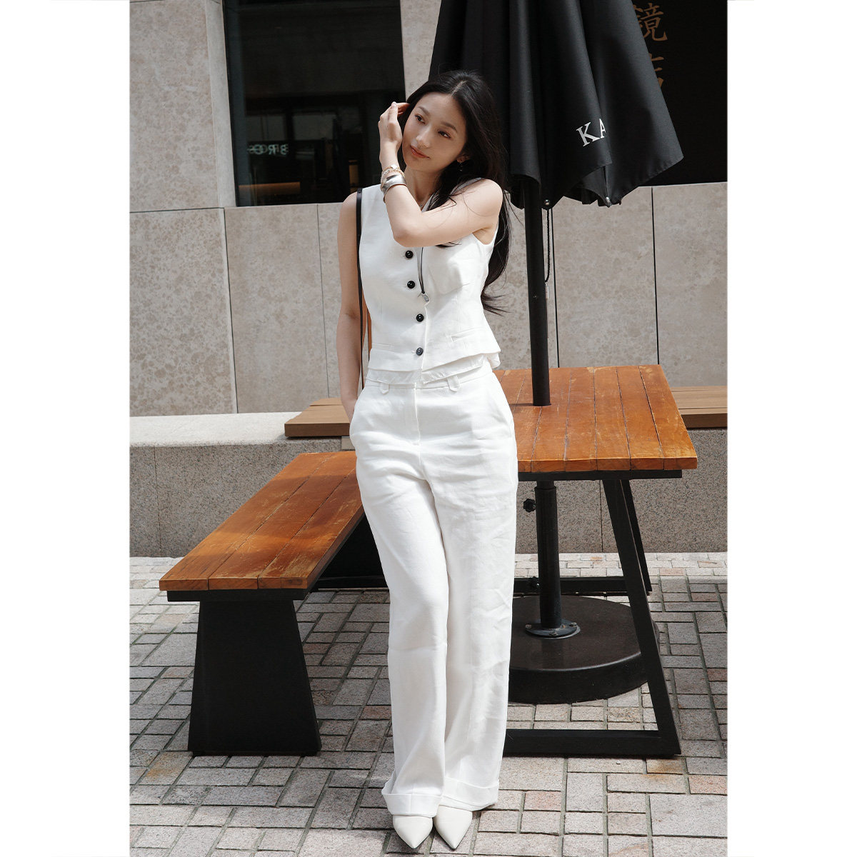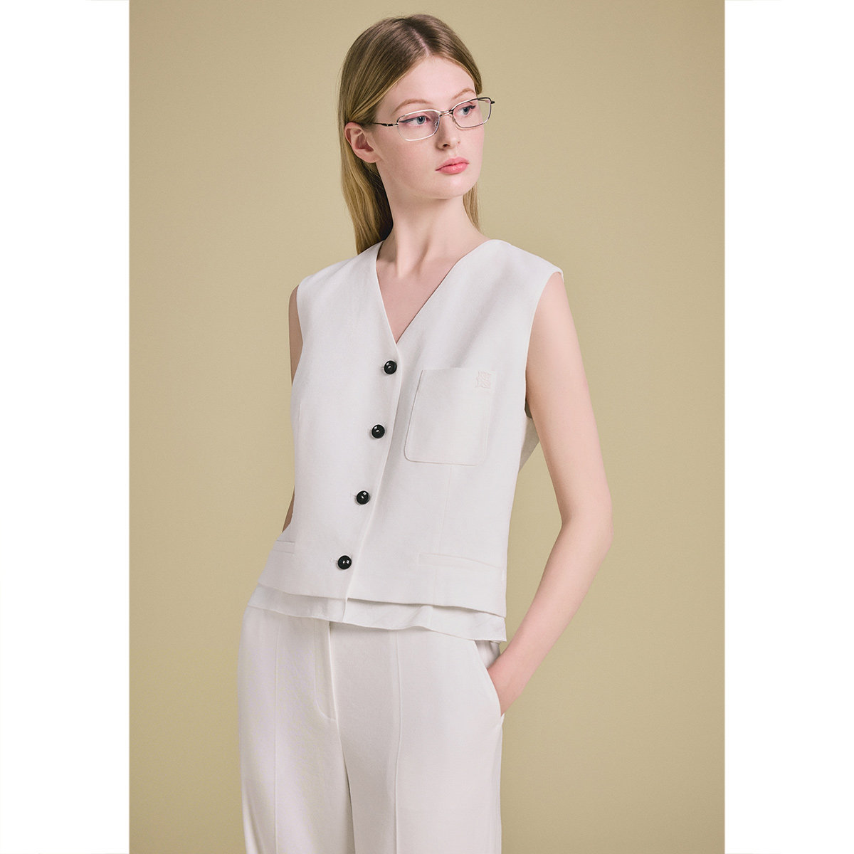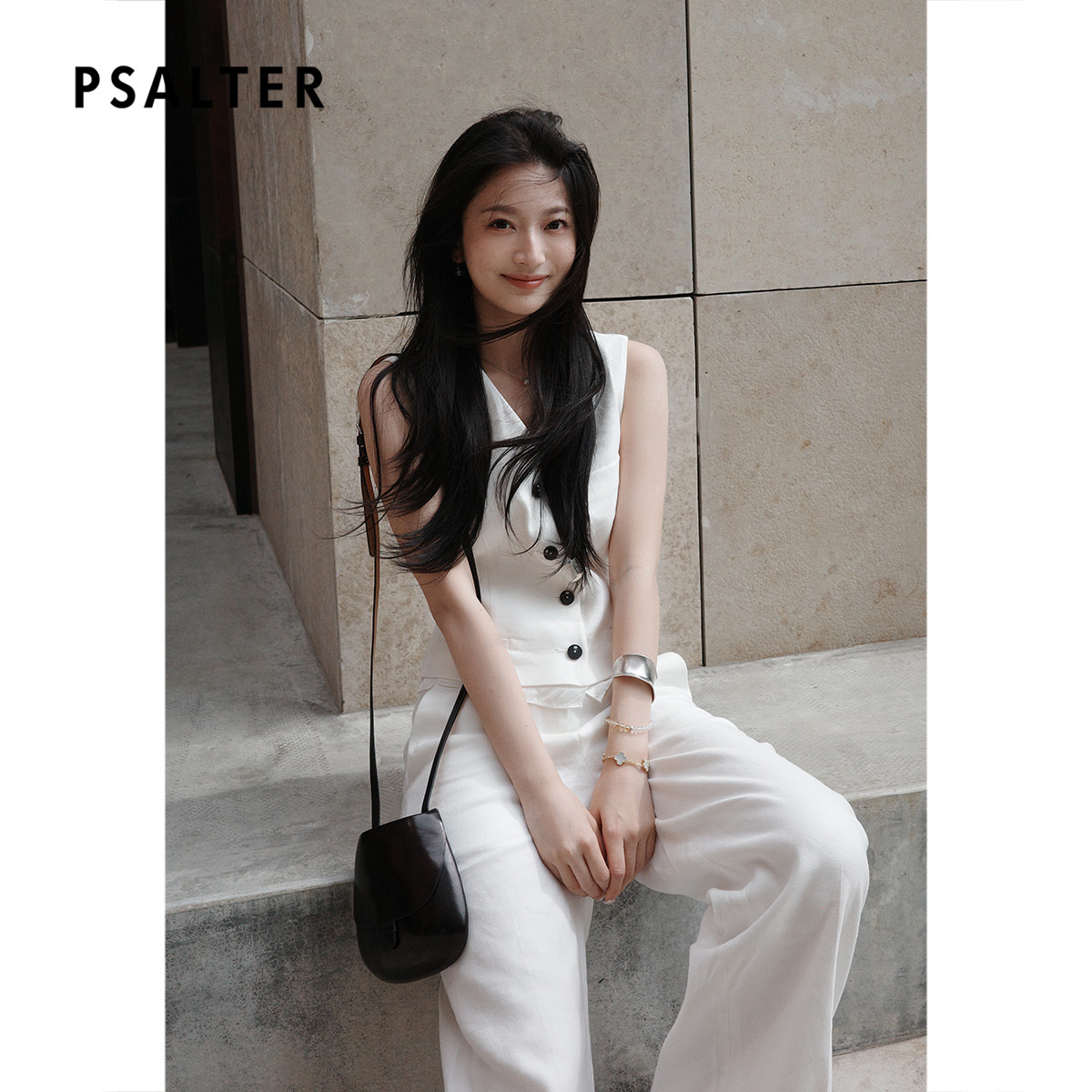 PSALTER诗篇通勤风收腰v领休闲亚麻混纺背心女马夹2025夏季新款