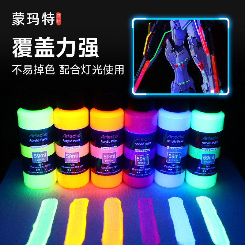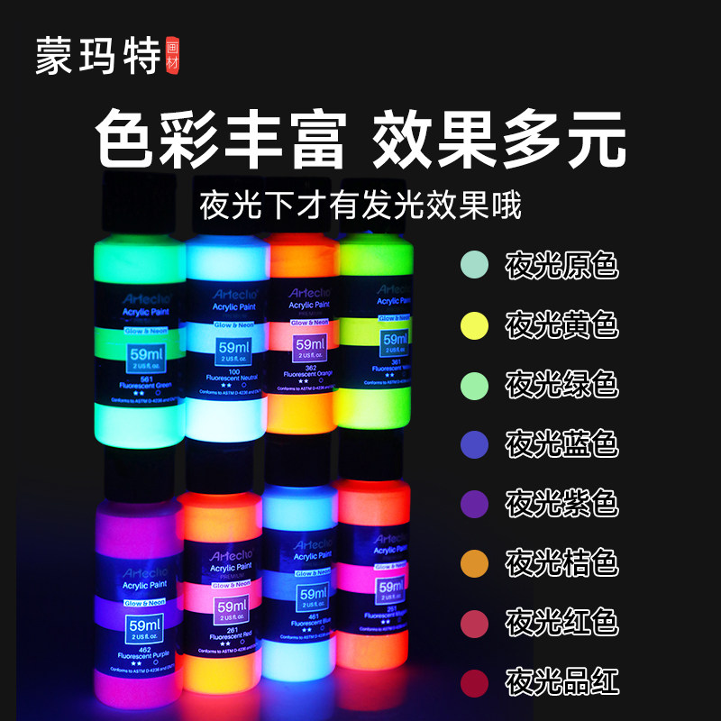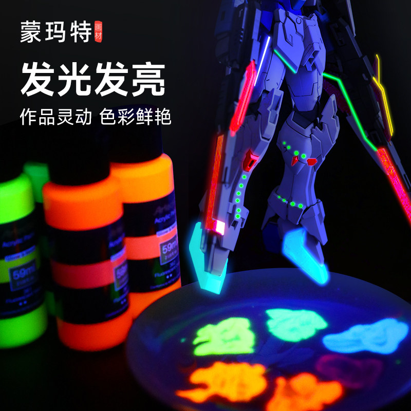 蒙玛特 夜光丙烯颜料夜光漆高达模型上色涂鸦DIY创作荧光发光涂料衣服鞋子纺织绘画染料荧光丙烯画专用