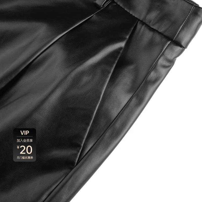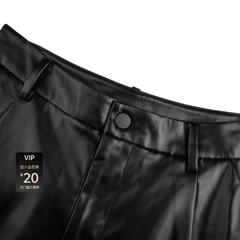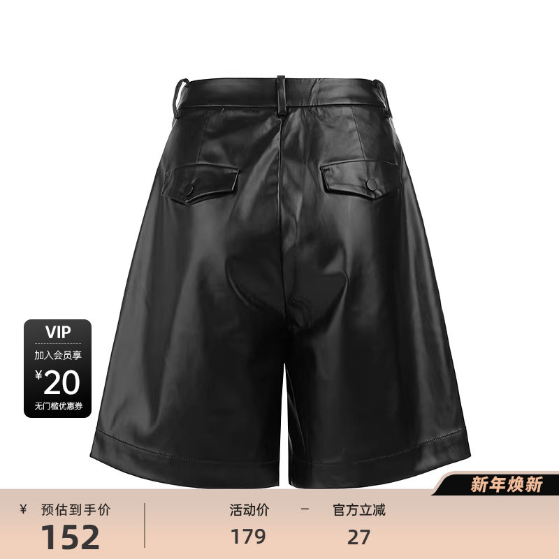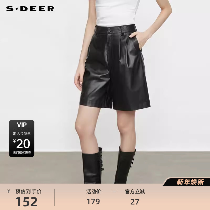 sdeer圣迪奥女装个性高腰插袋压褶皮裤短裤S244Z0901
